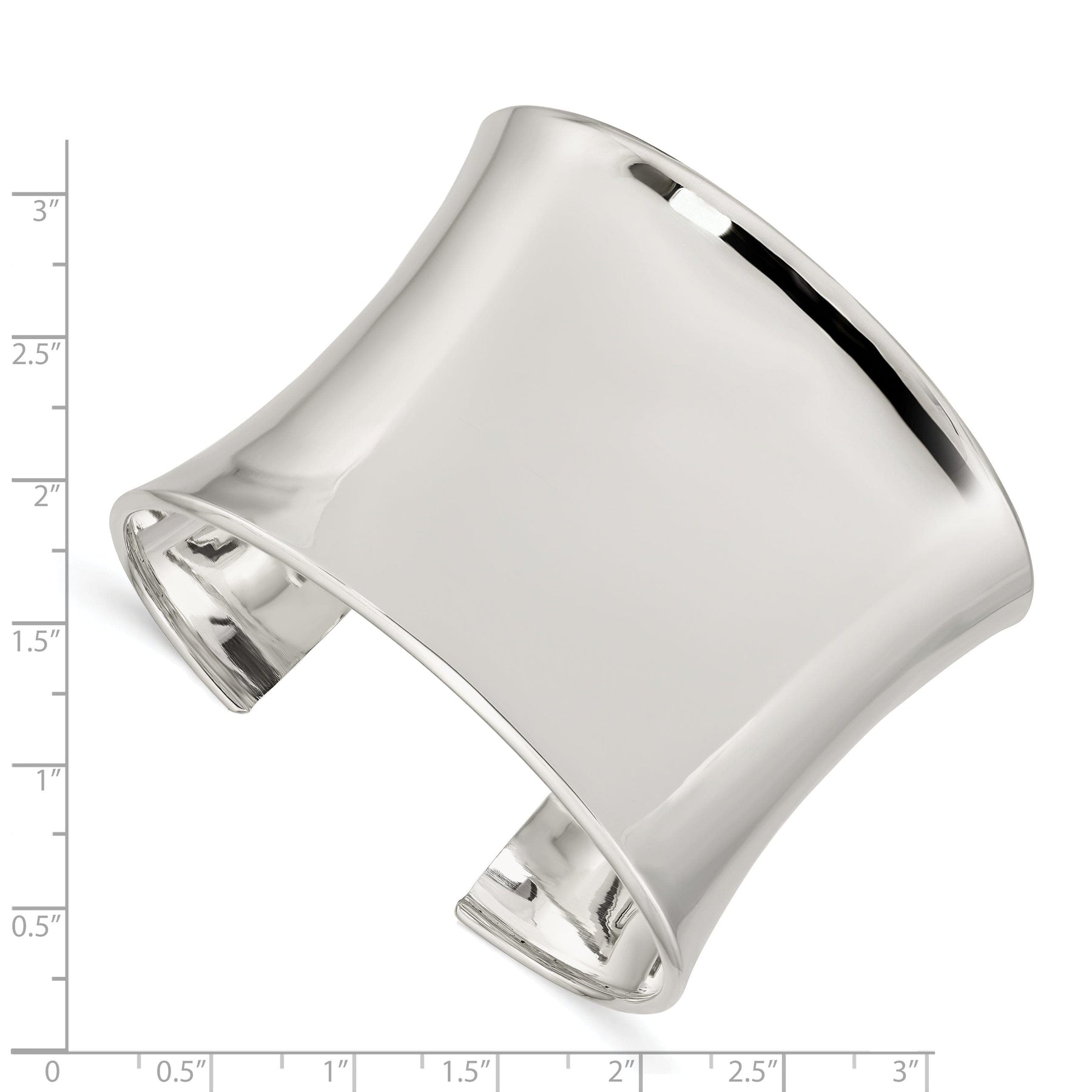 Elevate your wrist game with our stunning Sterling Silver Polished Finish Hollow Concave Cuff Bangle Bracelet. This exquisite piece effortlessly combines elegance and modern style, making it the perfect accessory for any outfit.