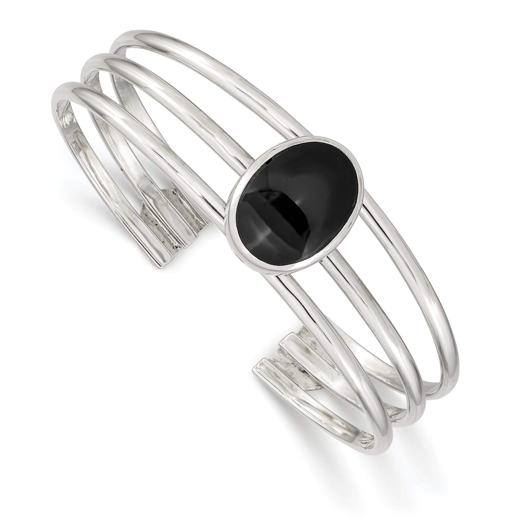 Add a touch of luxury to your jewelry collection with this exquisite Sterling Silver Onyx 3-Strand Cuff Bangle Bracelet. Whether you're treating yourself or gifting it to a loved one, this bracelet is sure to make a lasting impression.