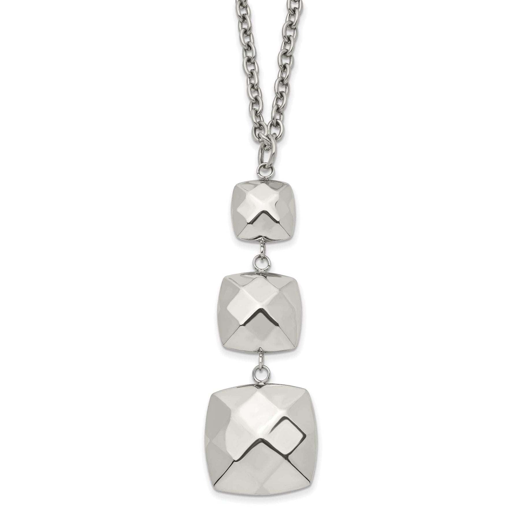 Whether you're dressing up for a special occasion or simply looking to add a touch of glamour to your everyday style, this Stainless Steel Polished Hollow Squares Dangle Necklace is sure to become a favorite in your jewelry collection. Its sleek and timeless design makes it a versatile piece that can be styled in countless ways.