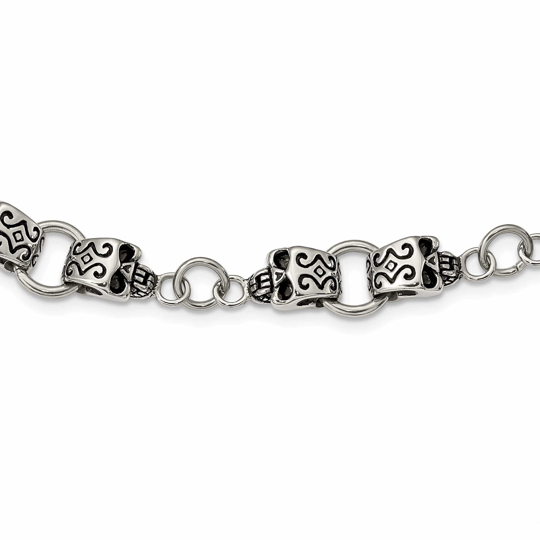 Elevate your look with a touch of edgy style with this Stainless Steel Skull Necklace. Crafted from high-quality stainless steel, this necklace boasts a polished and antiqued finish for a sleek and timeless look. The durable design ensures it will last for years to come, making it a versatile piece for any modern man's wardrobe.