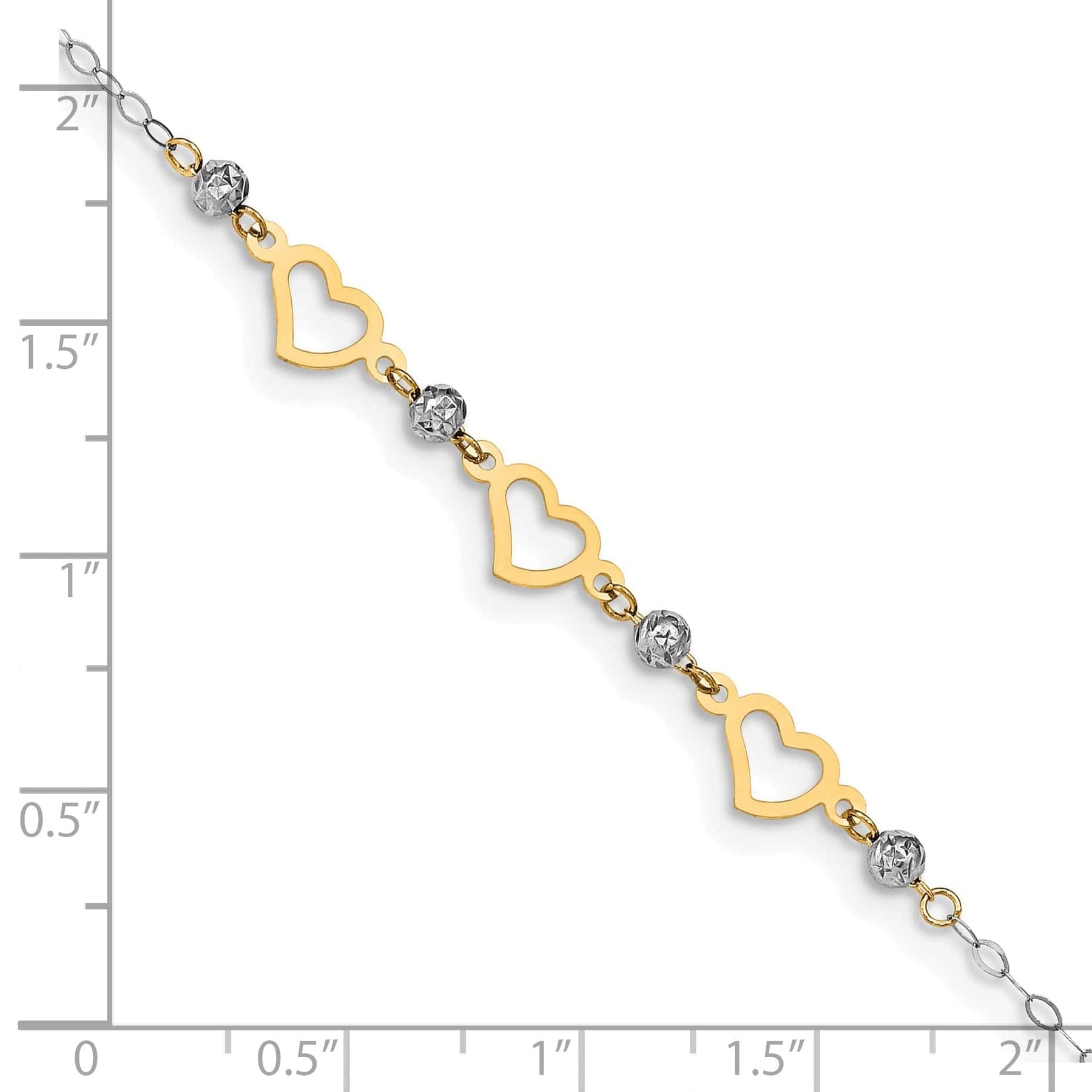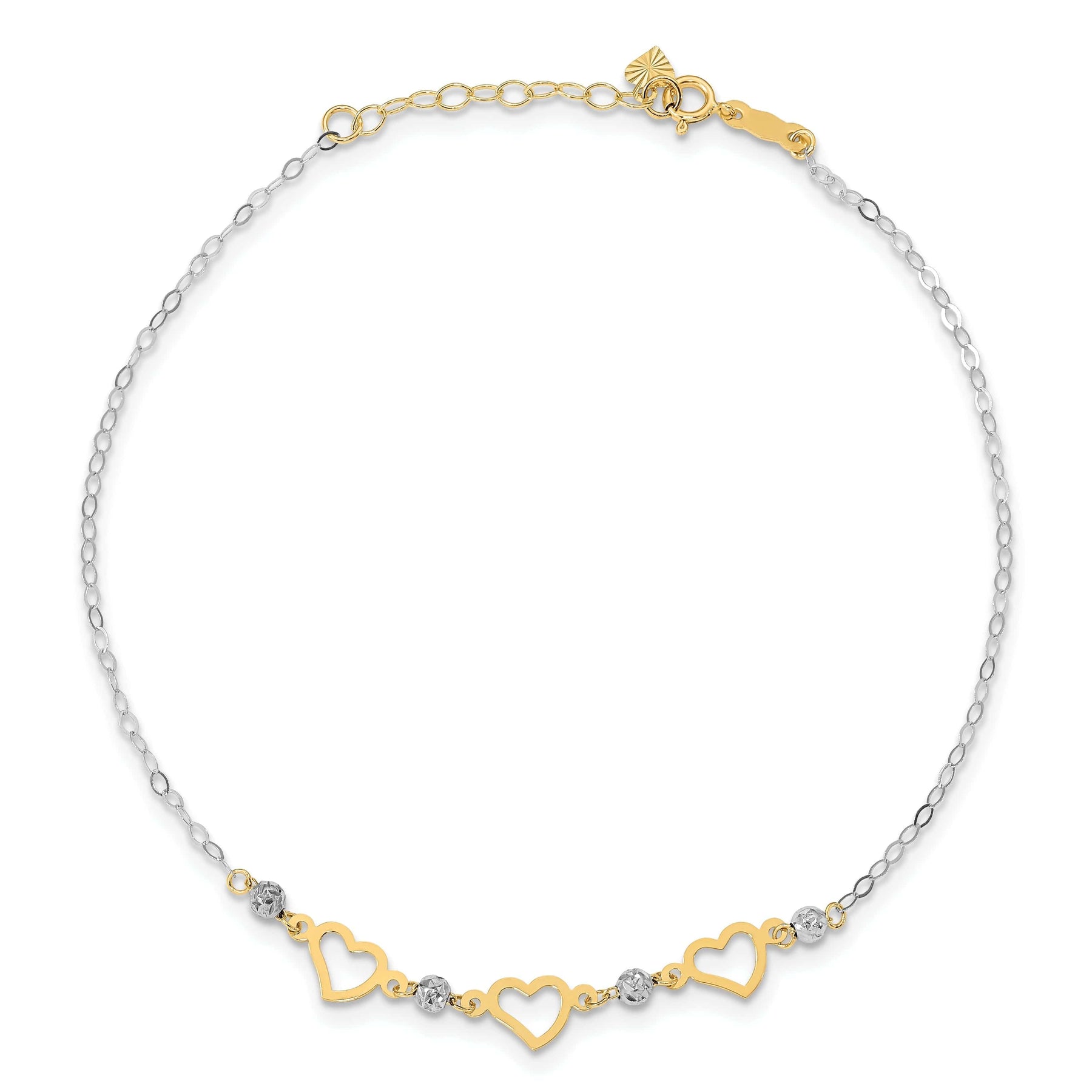 14K Two-tone Gold Oval Link Beads Heart Anklet