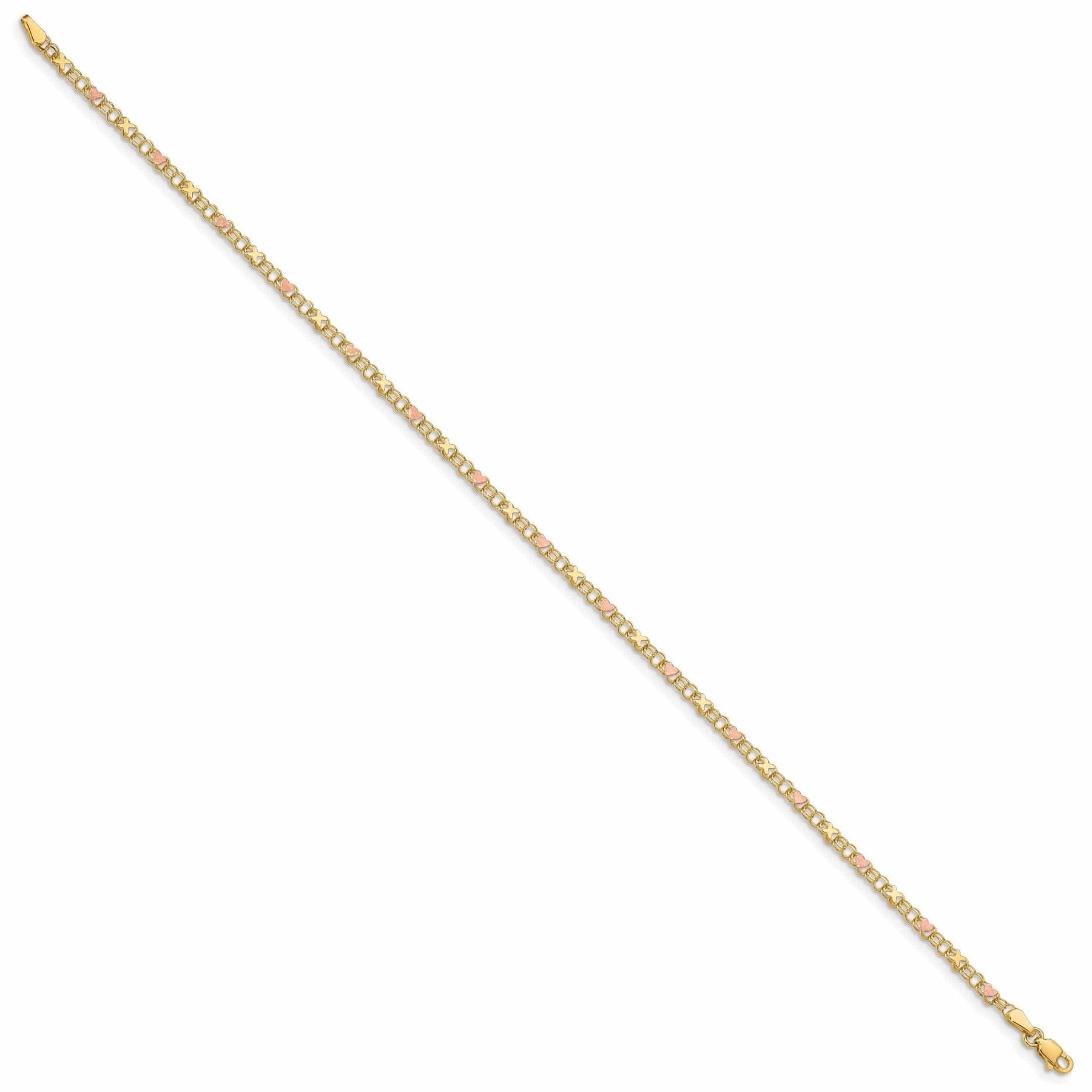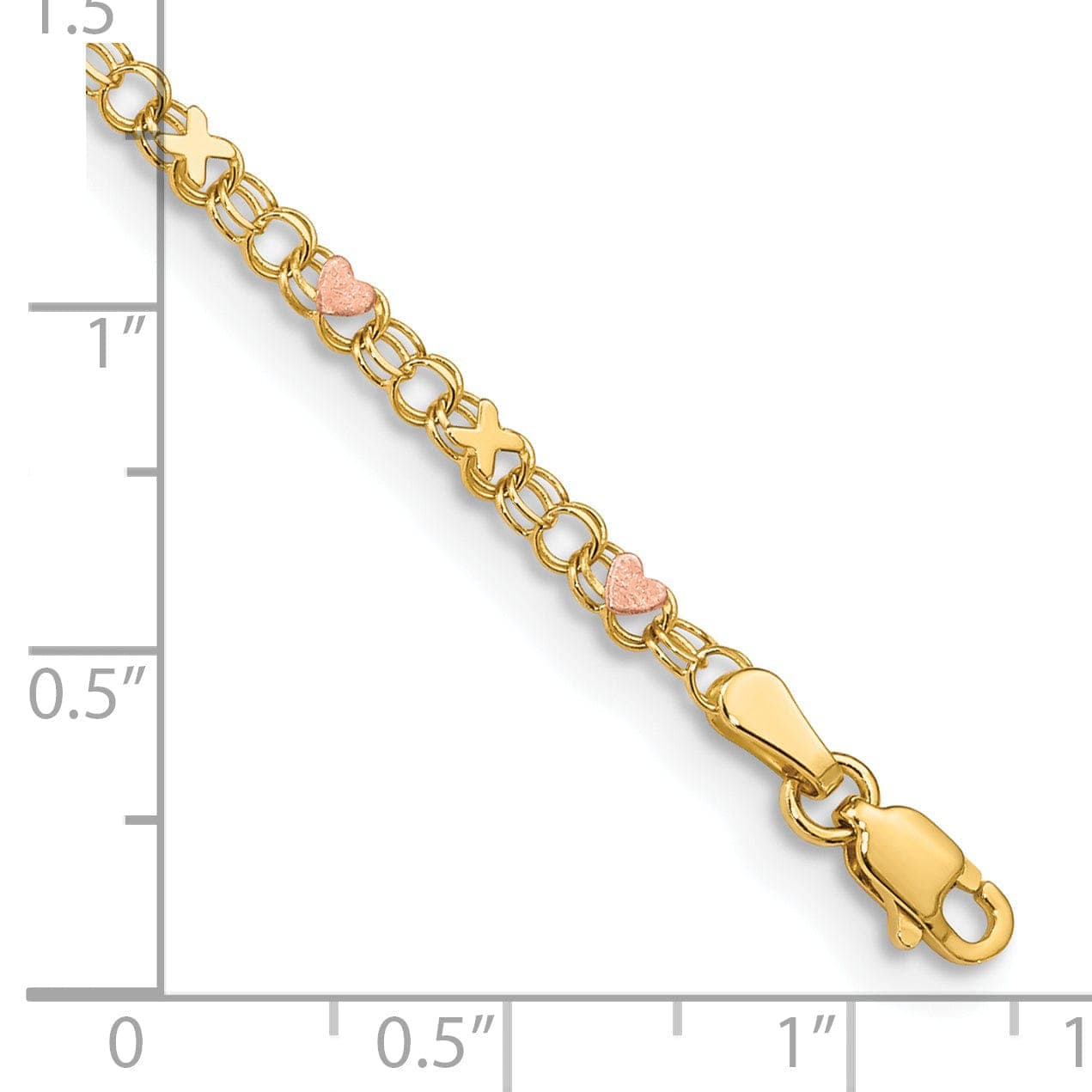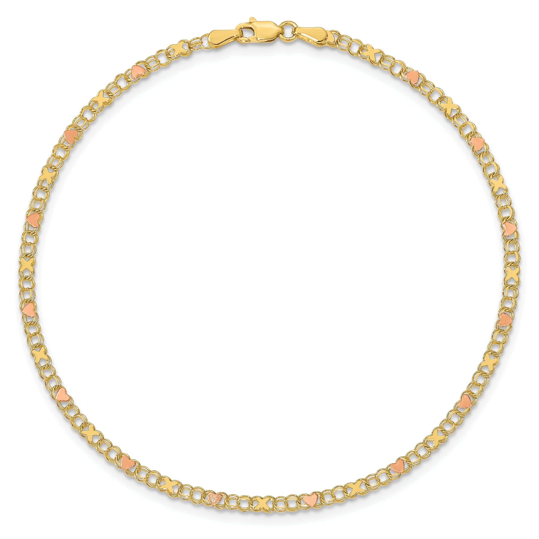 14k Yellow Gold Rhodium X's Hearts Anklet