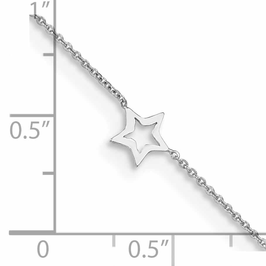 Add a touch of celestial glamour to your summer look with our stunning 14k White Gold Adjustable Star Anklet. Crafted with high-quality white gold, this anklet features delicate star-shaped charms that twinkle and shine with every step you take. The adjustable design ensures a perfect fit for any ankle size, while the sturdy lobster clasp ensures secure wear all day long. Whether you're heading to the beach or a special event, this anklet is sure to elevate your style and make a statement. Treat yourself or someone special to this elegant piece of jewelry that will be cherished for years to come. Elevate your ankle game with this gorgeous 14k White Gold Adjustable Star Anklet and shine bright like a star wherever you go.