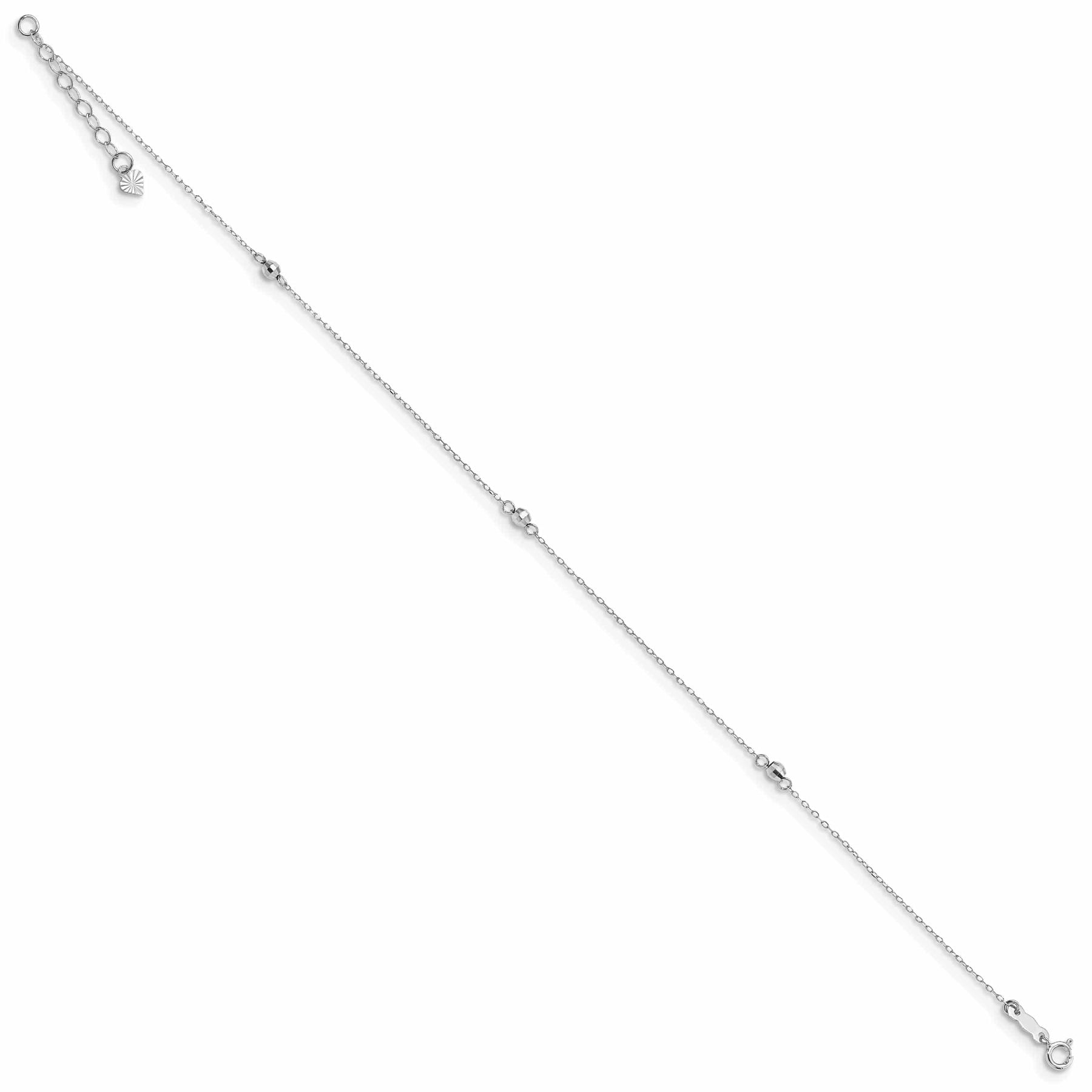 Made with high-quality materials and expert craftsmanship, this 14K White Gold Mirror Beaded Anklet is a timeless piece that will last for years to come. Treat yourself or a loved one to this stylish and versatile anklet that is sure to become a cherished addition to any jewelry collection. Upgrade your accessories with this exquisite anklet today.
