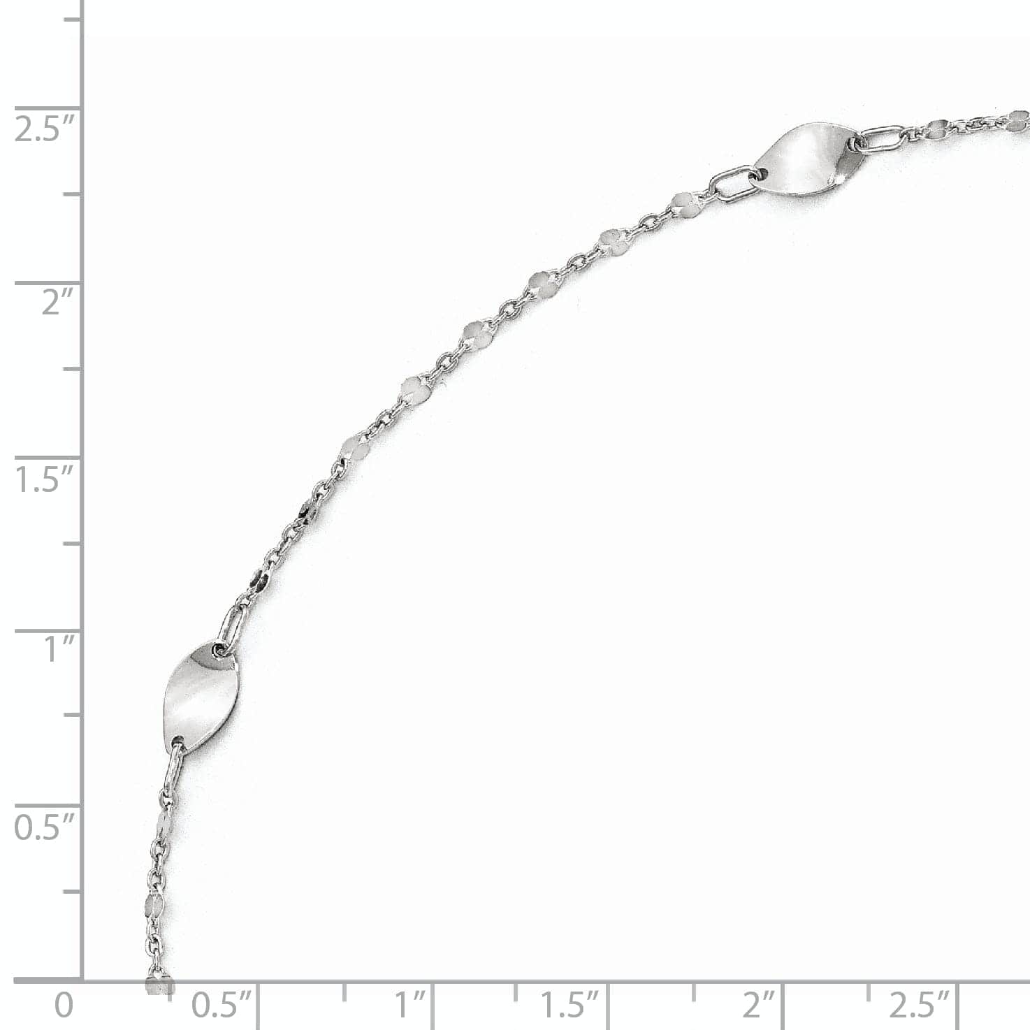 Elevate your style with this stunning 14k White Gold Polished Finish Anklet with 1in ext. Anklet. Made from luxurious 14k white gold, this anklet exudes elegance and sophistication. The anklet features a polished finish and rhodium plating, ensuring a long-lasting, glossy shine that will catch the light with every step you take.