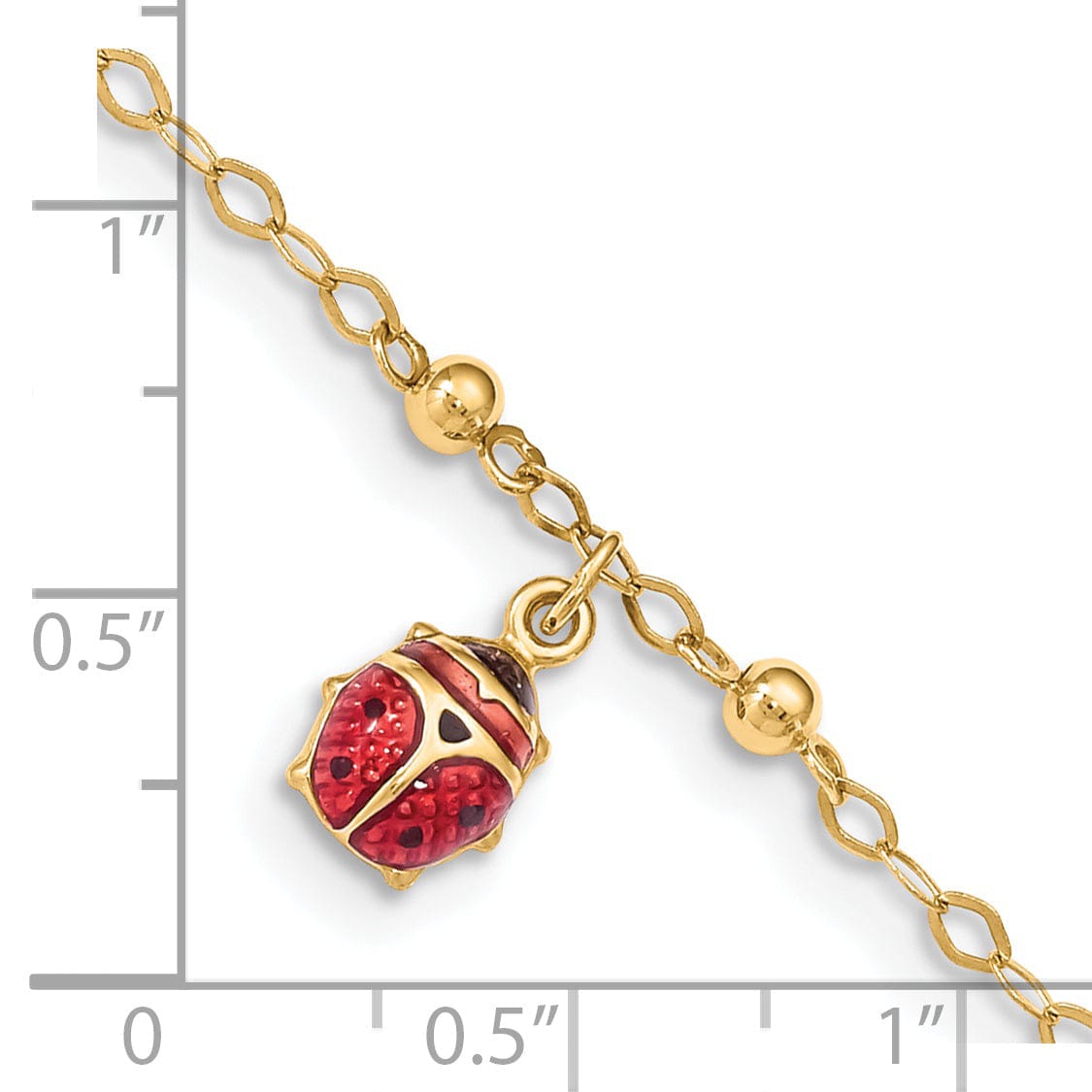 14k Yellow Gold Adjustable Enameled Ladybug Anklet
