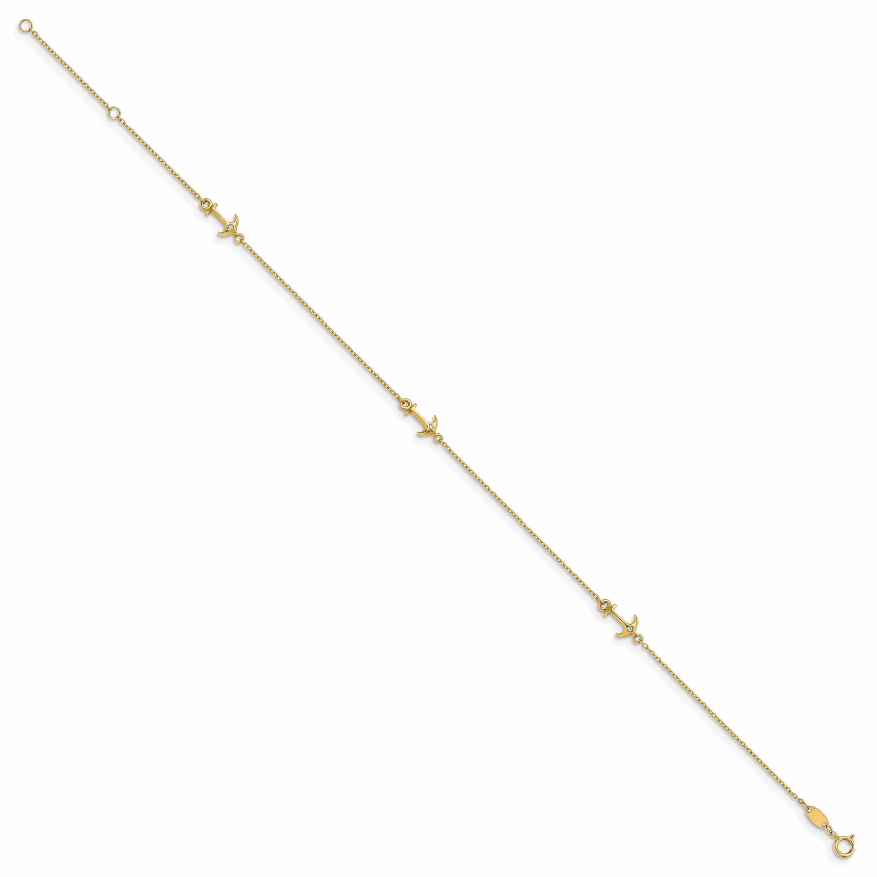 14k Yellow Gold C.Z Polished Anchor Anklet