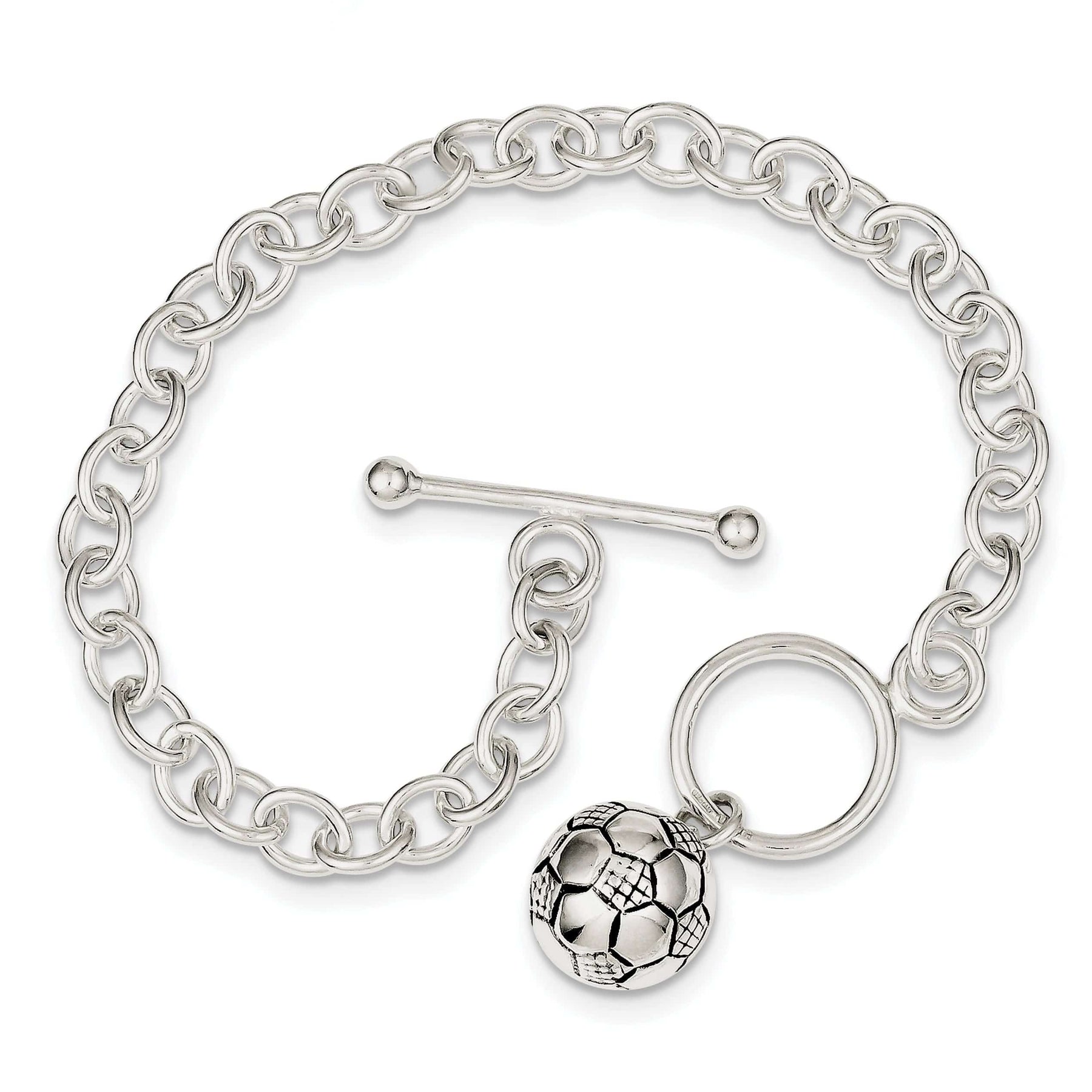 Crafted with precision and attention to detail, this bracelet is a must-have for any sports enthusiast. The sterling silver material ensures durability and long-lasting shine, while the intricate soccer ball charm adds a touch of elegance to any outfit. Whether you're hitting the field or heading out for a night on the town, this bracelet will add a stylish touch to any ensemble.