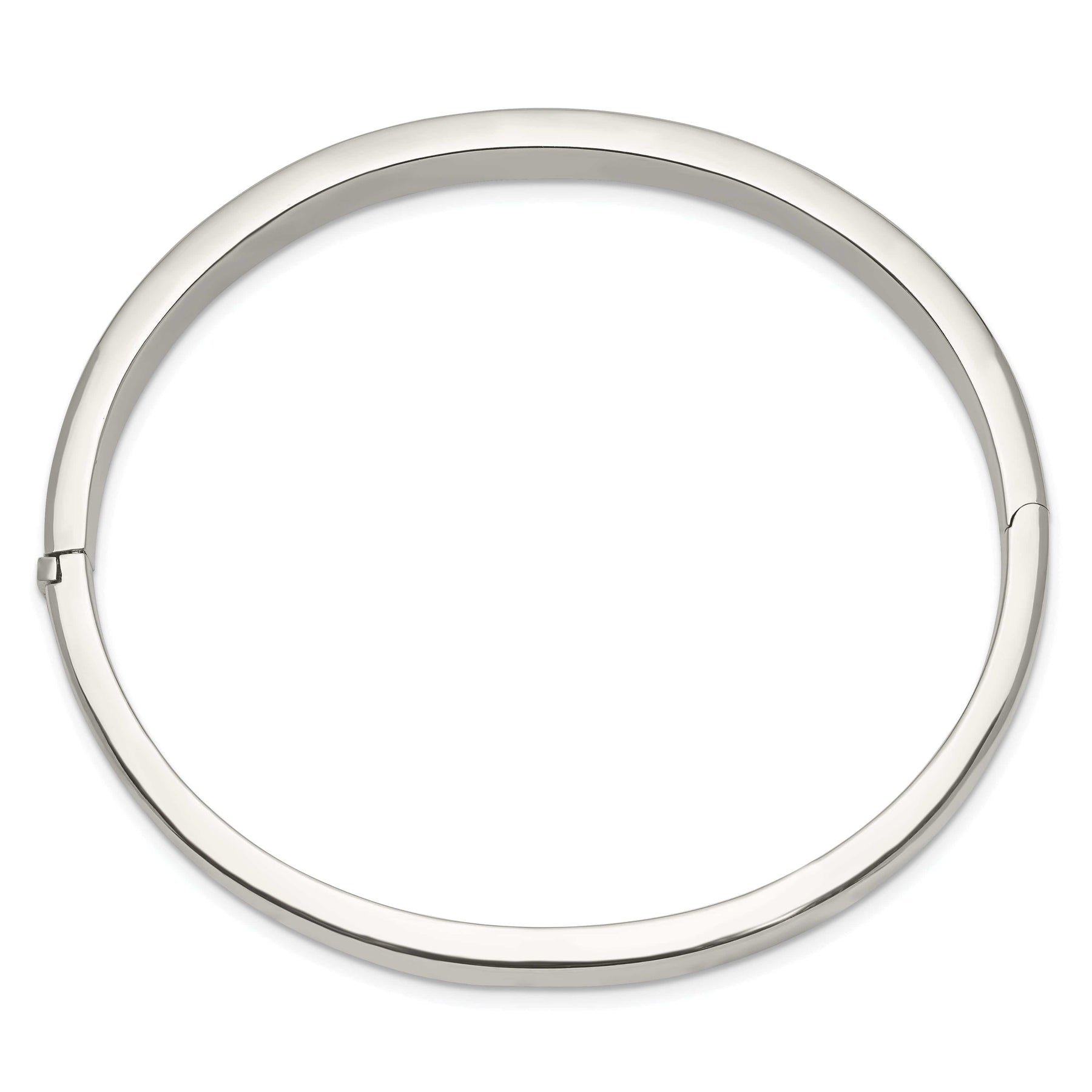 The versatile hinged design allows for easy wearing and removal, making it a convenient accessory for everyday wear or special occasions. The bangle has a sleek and polished finish that adds a touch of luxury to any outfit.