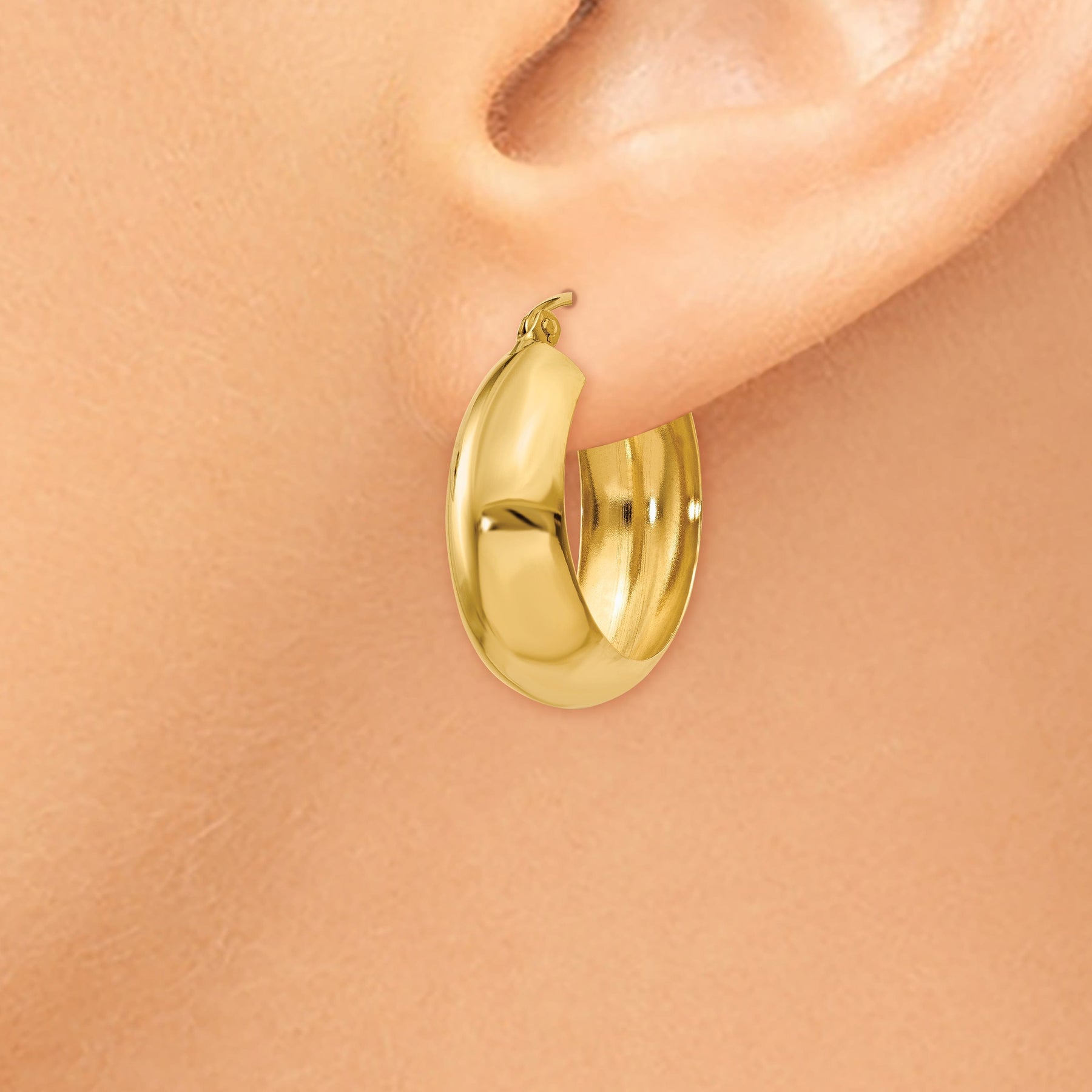 14k Yellow Gold 7MM Wide Hoop Earrings