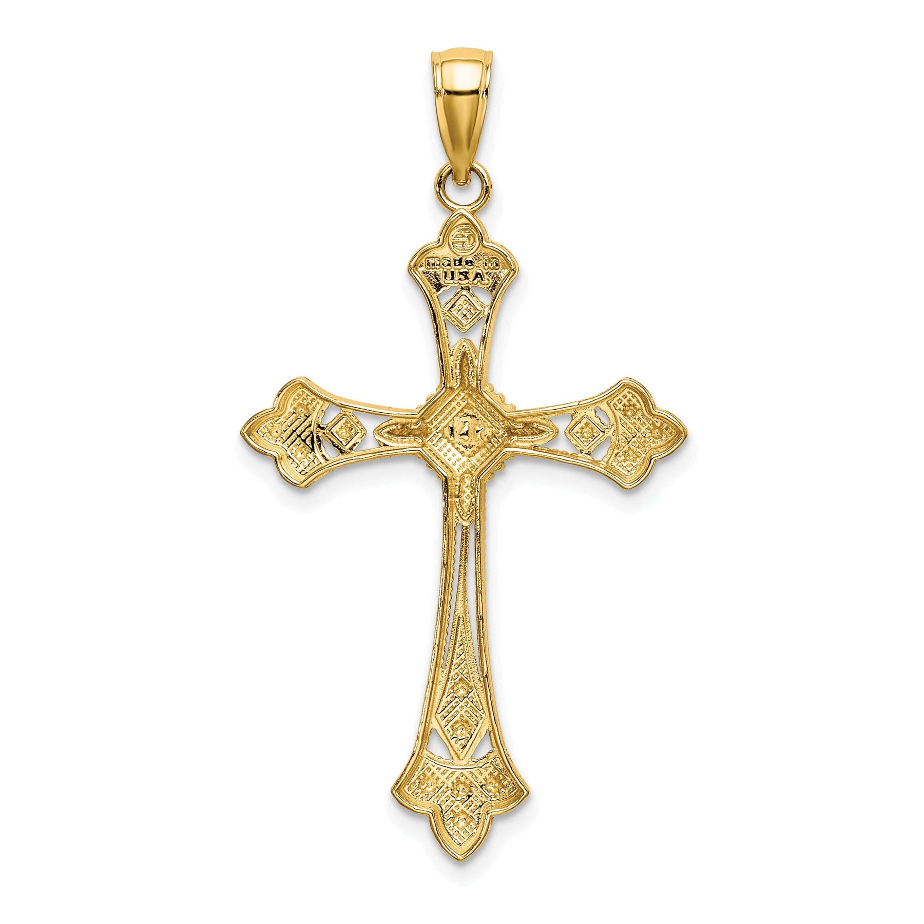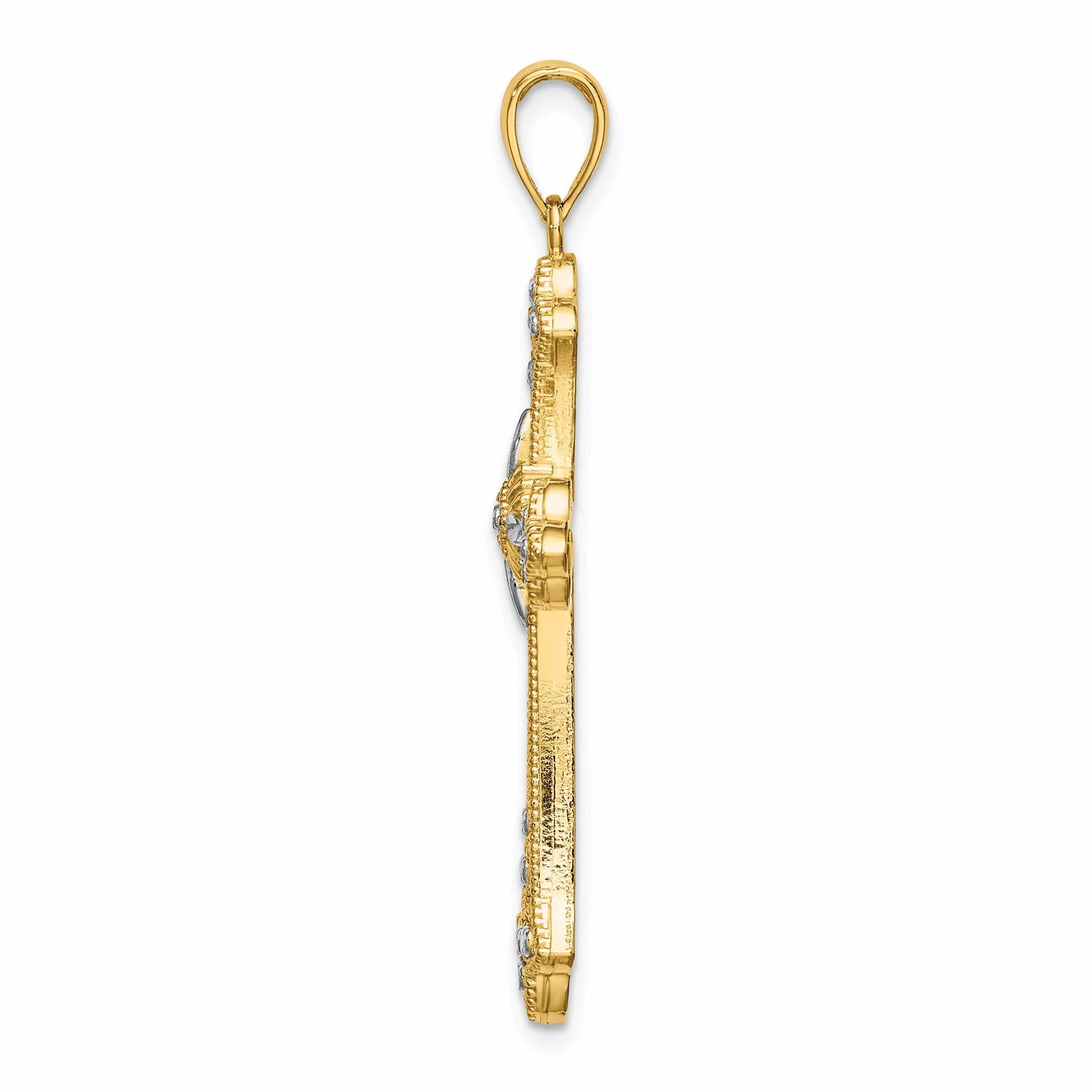 14K Two-Tone Gold Timeless D.C Edges Filigree Cross Pendant