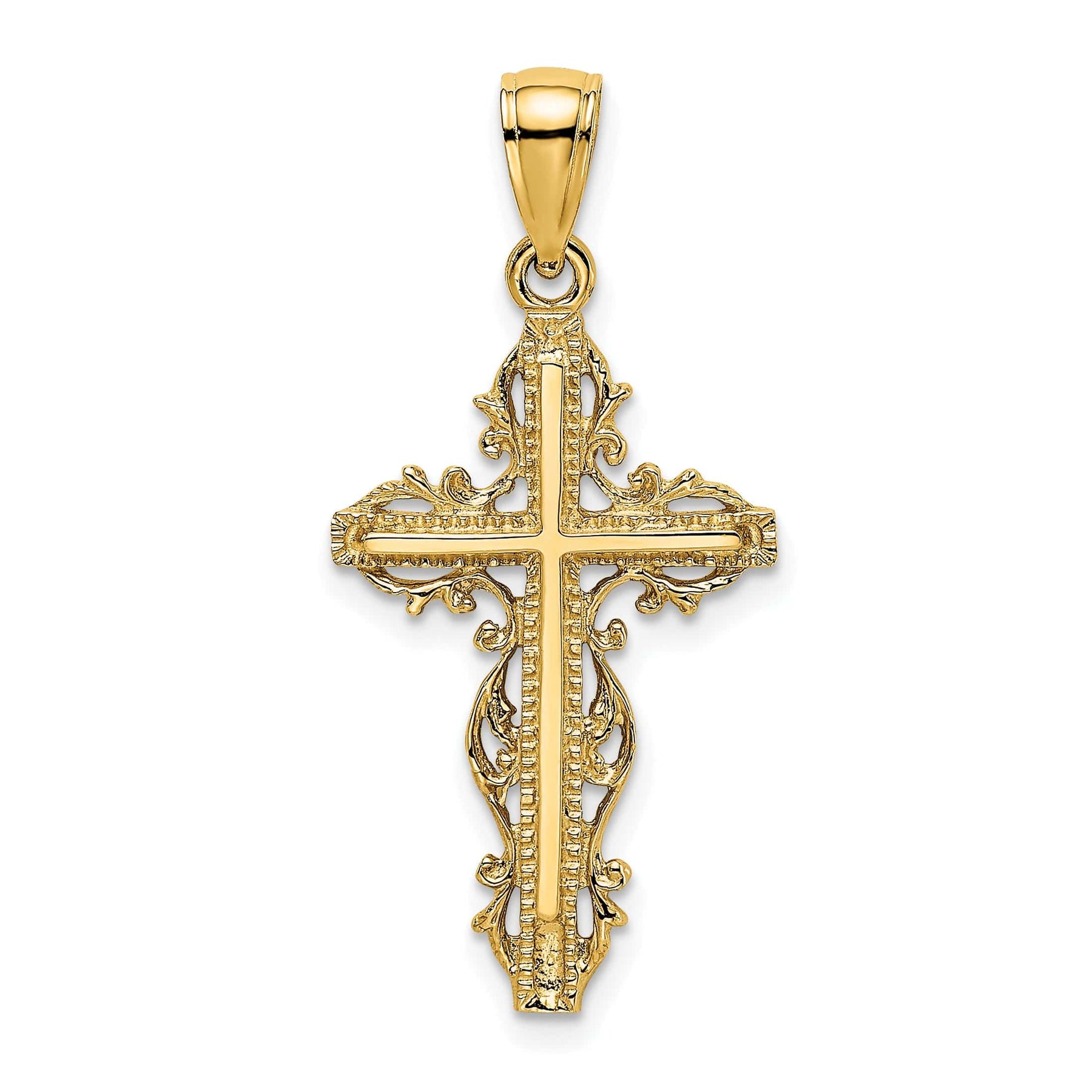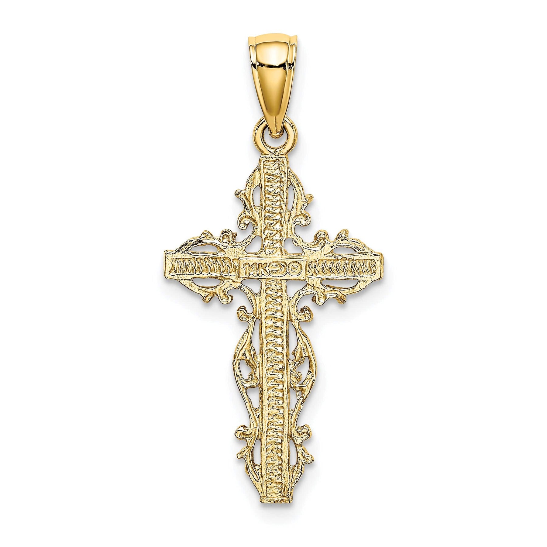 14K Yellow Gold Bold with Lace Trim Filigree Cross Pendant