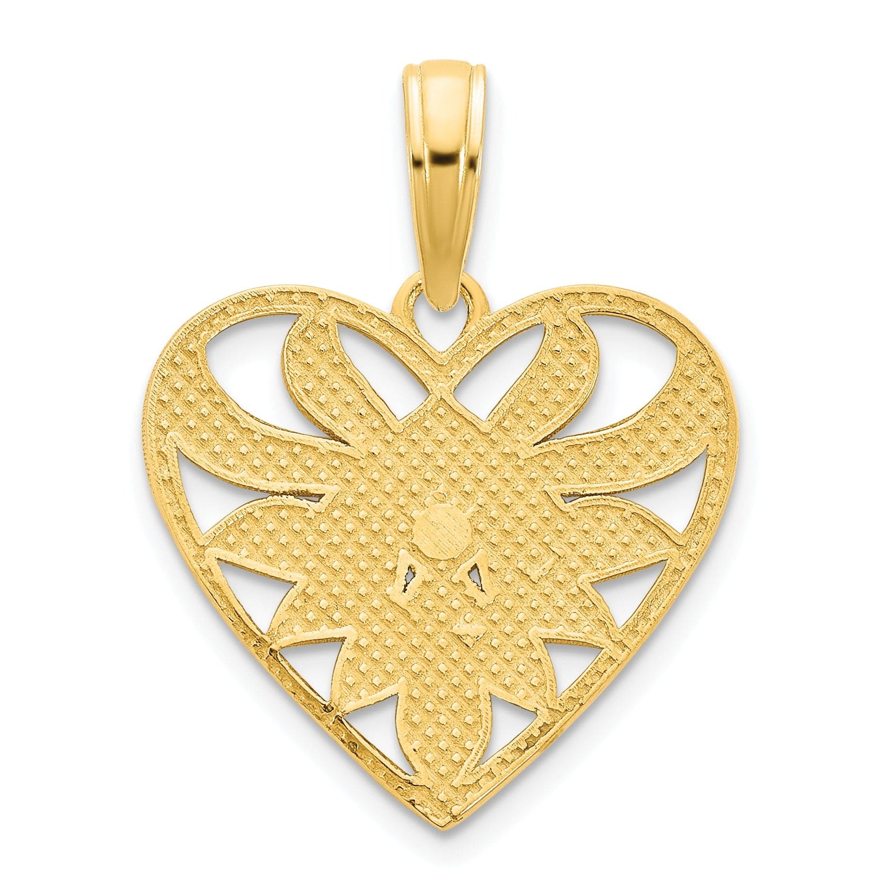14k Yellow Gold Fancy Filigree Design Heart Shape Pendant