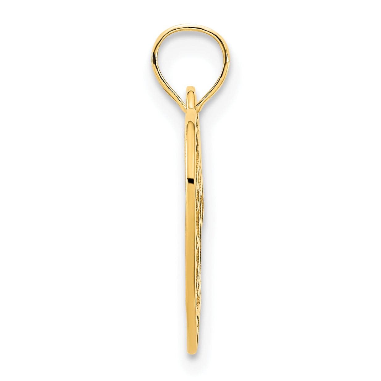 This pendant is solid and durable, making it perfect for everyday wear. With a weight of 1.7 grams, a width of 14.56 mm, and a thickness of 0.78 mm, it is lightweight and comfortable to wear all day long. The 5 mm bail length allows you to easily attach it to your favorite chain.