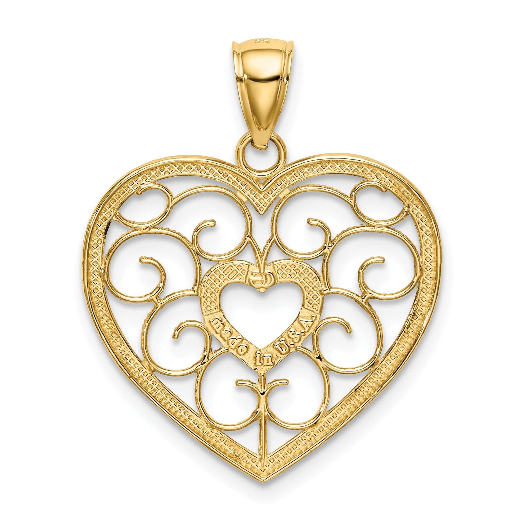 14k Yellow Gold Rhodium Filigree Heart Pendant
