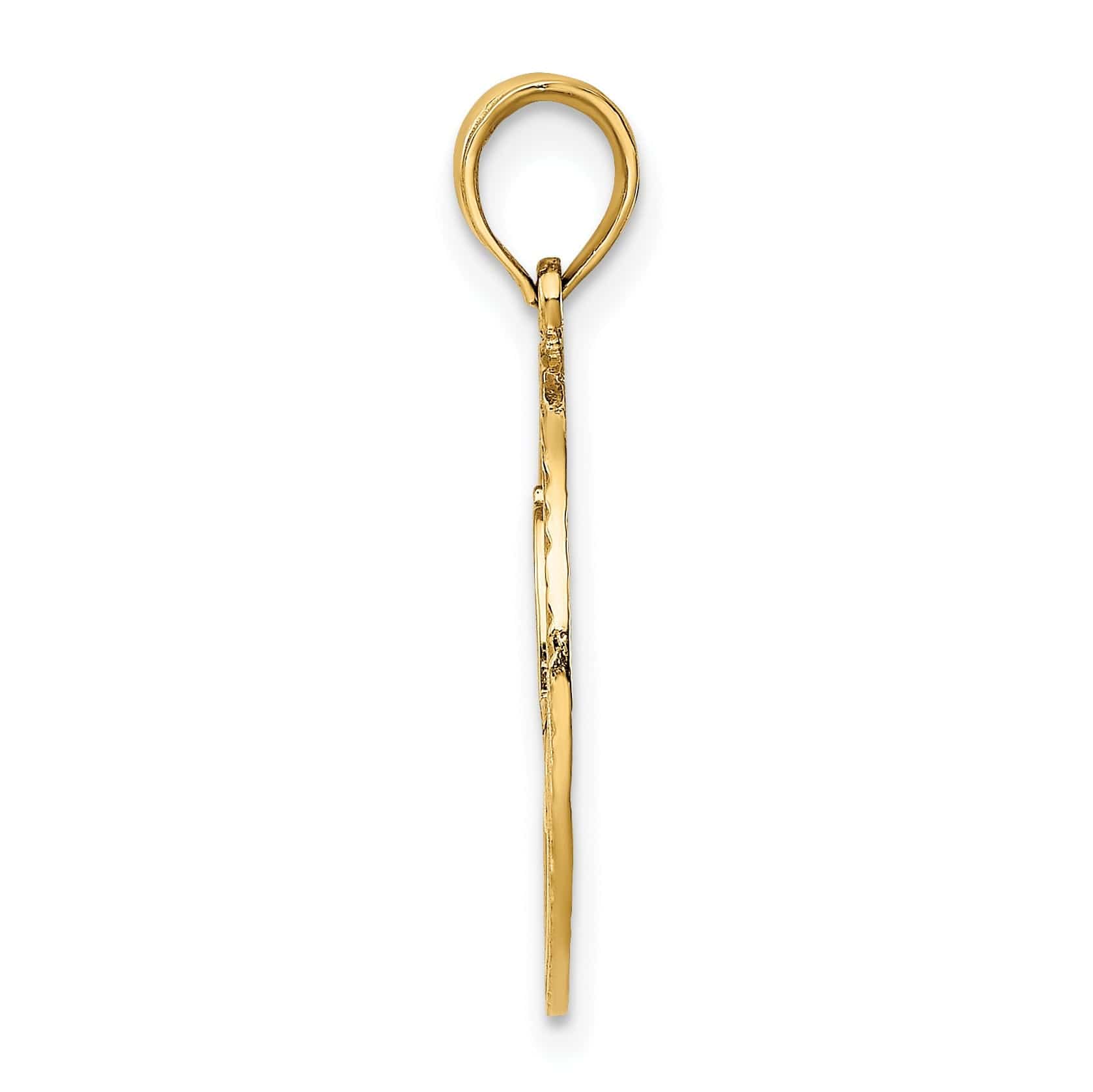 14k Yellow Gold Textured Polished Finish Fireman Helmet in Circle Disk Shape Design Charm Pendant
