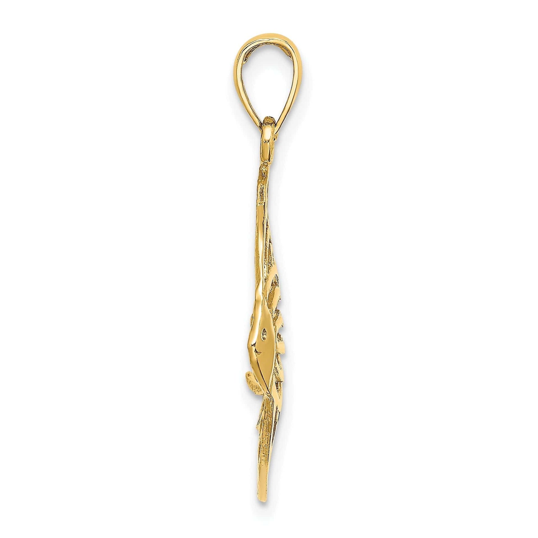 14K Yellow Gold Solid Textured Polished Finish Cut Out ANGELFISH Charm Pendant