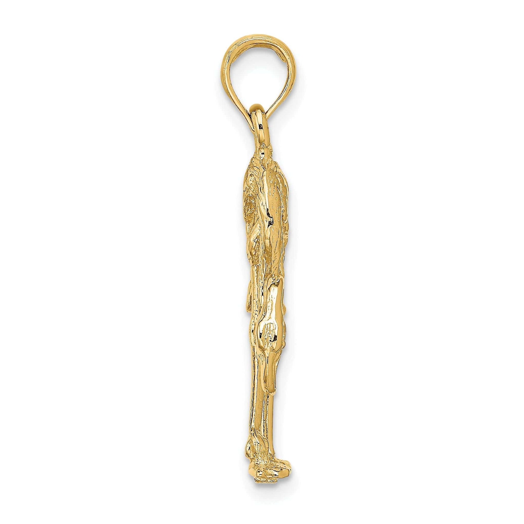 14K Yellow Gold Polished Textured Finish 3-Dimensional Flamingo Design Charm Pendant