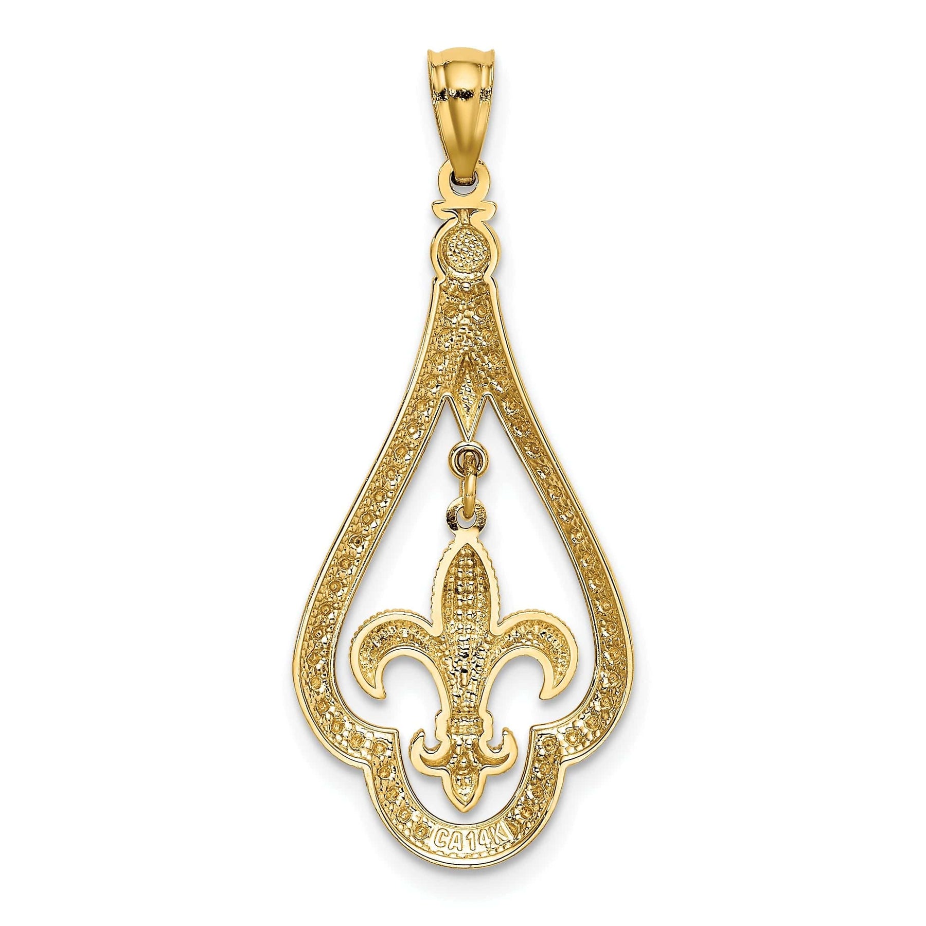 14k Yellow Gold Moveable Polished Diamond Cut Finish Fleur de Lis Dangle Design Charm Pendant