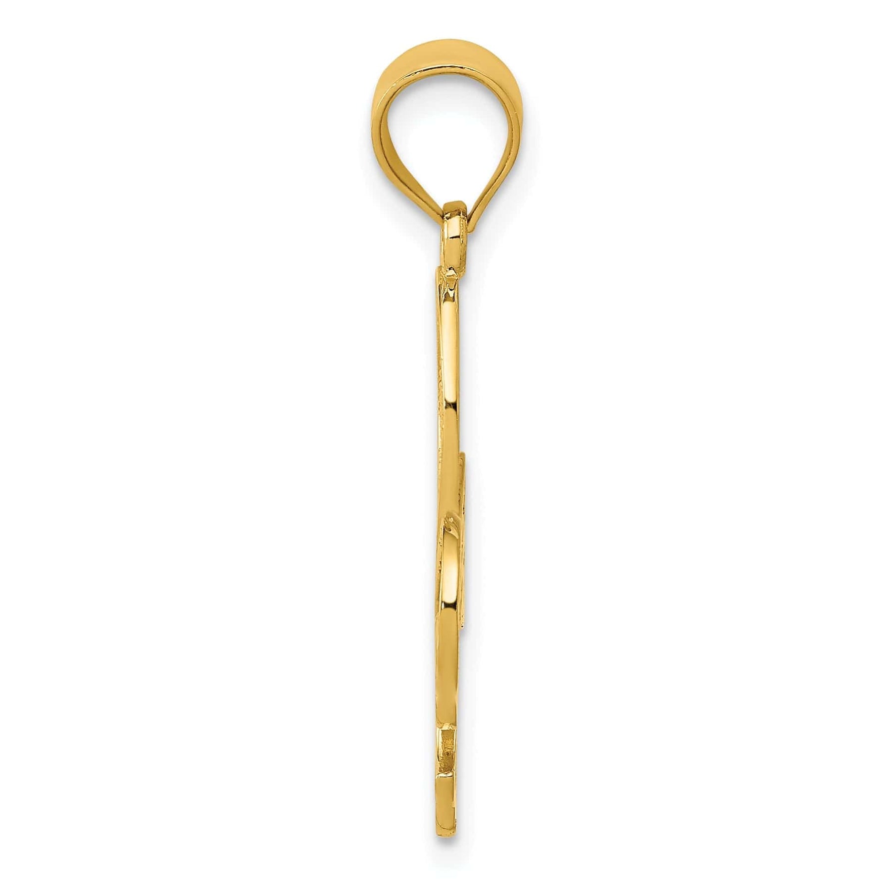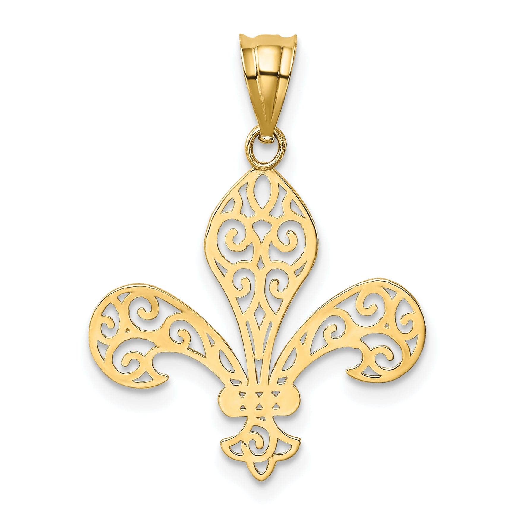 14k Yellow Gold Open Back Polished Finish Solid Mens Filigree Fleur de Lis Design Charm Pendant