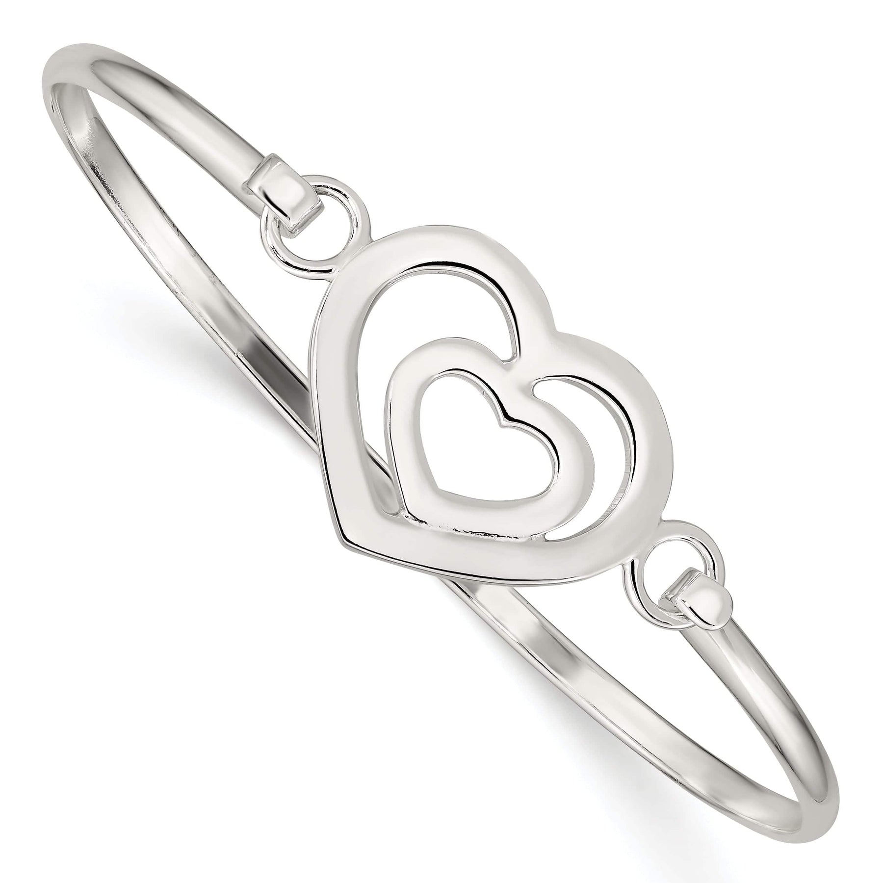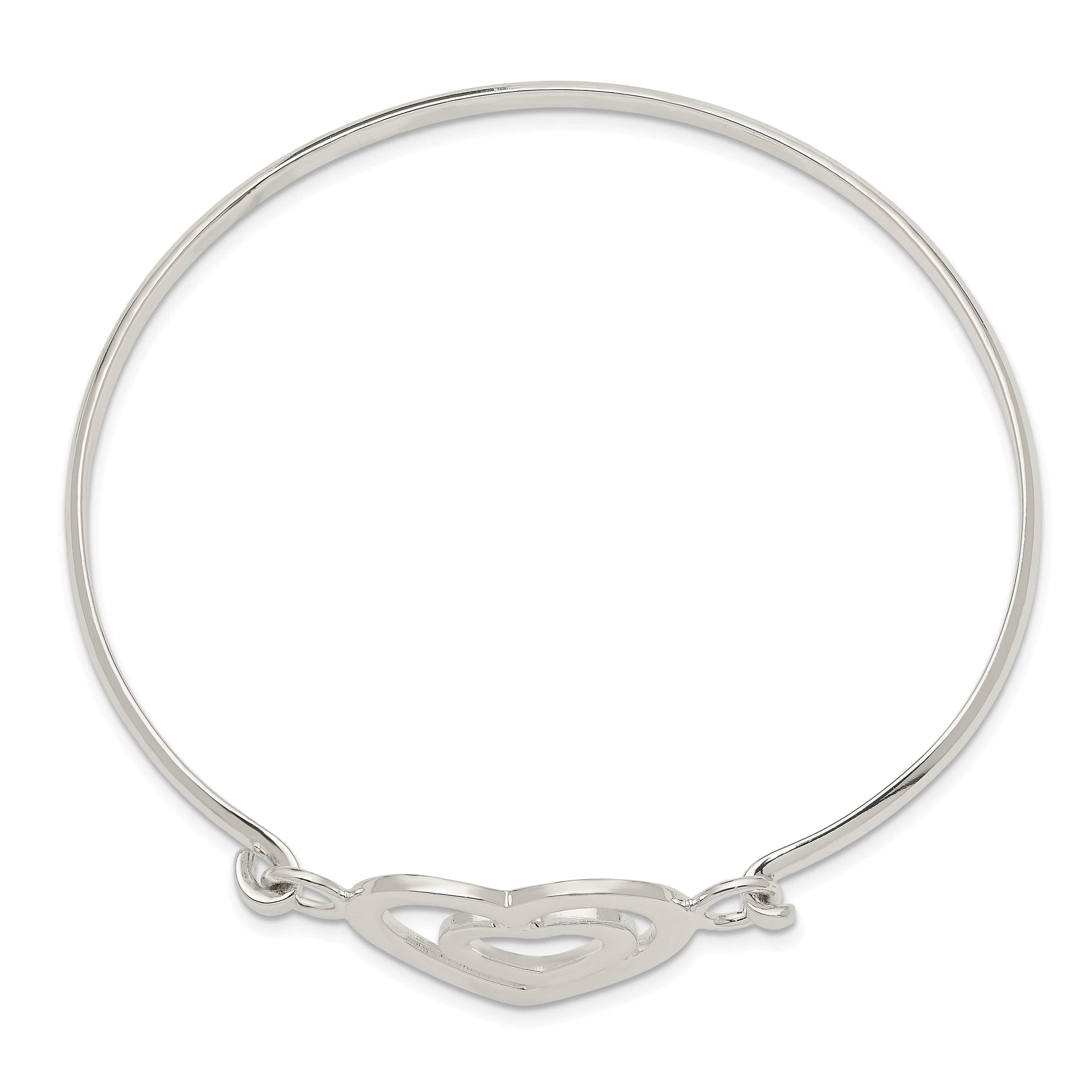 Give the gift of timeless elegance with our Sterling Silver Polished Finish Flexible Heart within a Heart Bangle Bracelet. Shop now and add a touch of sophistication to your jewelry collection.
