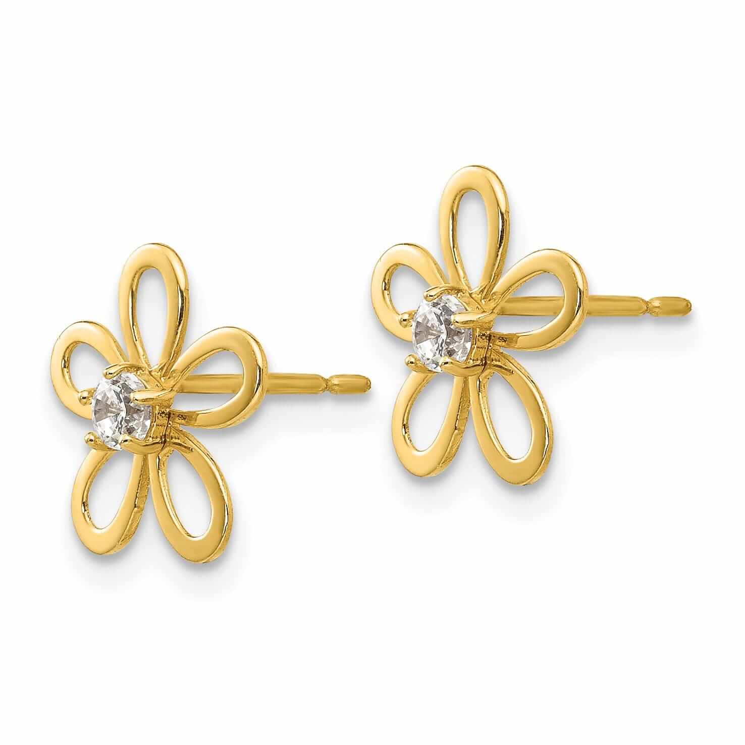 Add a touch of sparkle and whimsy to your little one's wardrobe with these charming 14k Yellow Gold Madi K Cubic Zirconia Children's Flower Post Earrings. Crafted from high-quality 14k yellow gold, these dainty earrings feature a delicate flower design adorned with shimmering cubic zirconia stones. Perfect for everyday wear or special occasions, these earrings are sure to become a treasured addition to your child's jewelry collection.