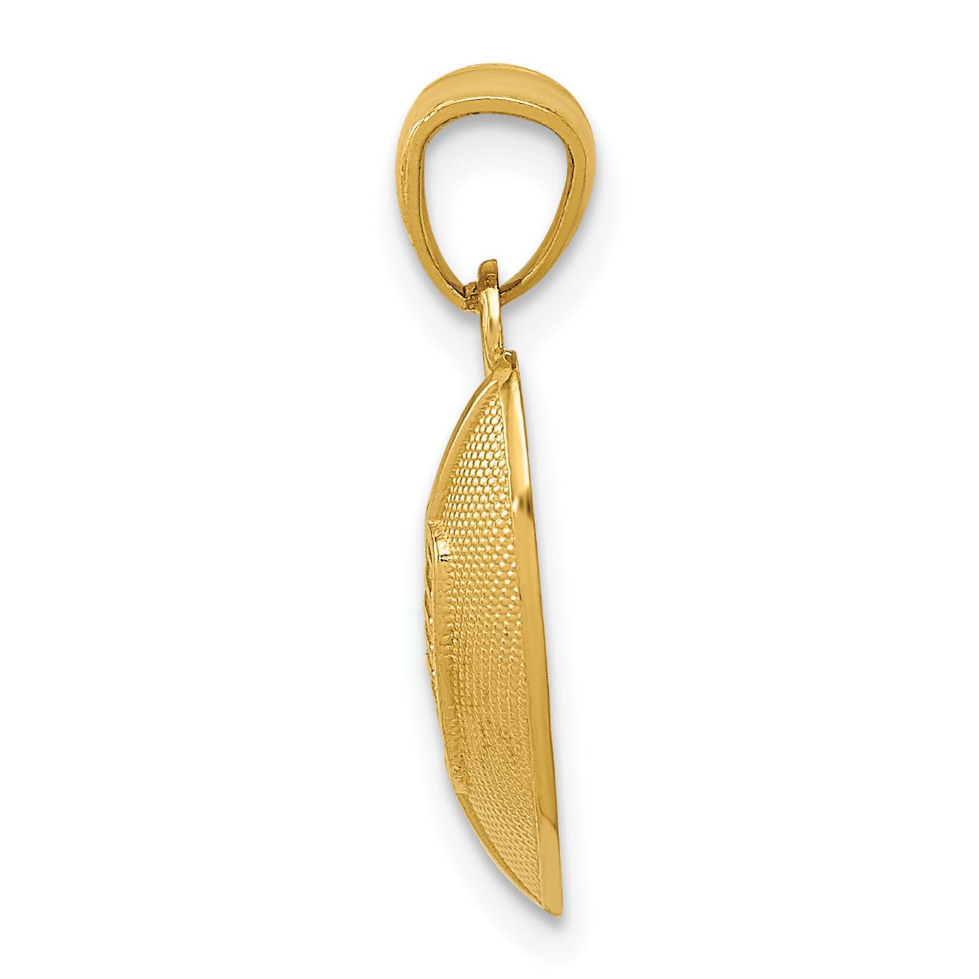 Add a touch of style and sporty flair to your jewelry collection with this stunning 14k Yellow Gold Textured Finish Football Charm Pendant. Crafted from high quality 14k yellow gold, this pendant features a intricate textured finish that adds depth and dimension to the design. The football charm pendant is perfect for any football fan or player, making it a great gift for those who love the sport.