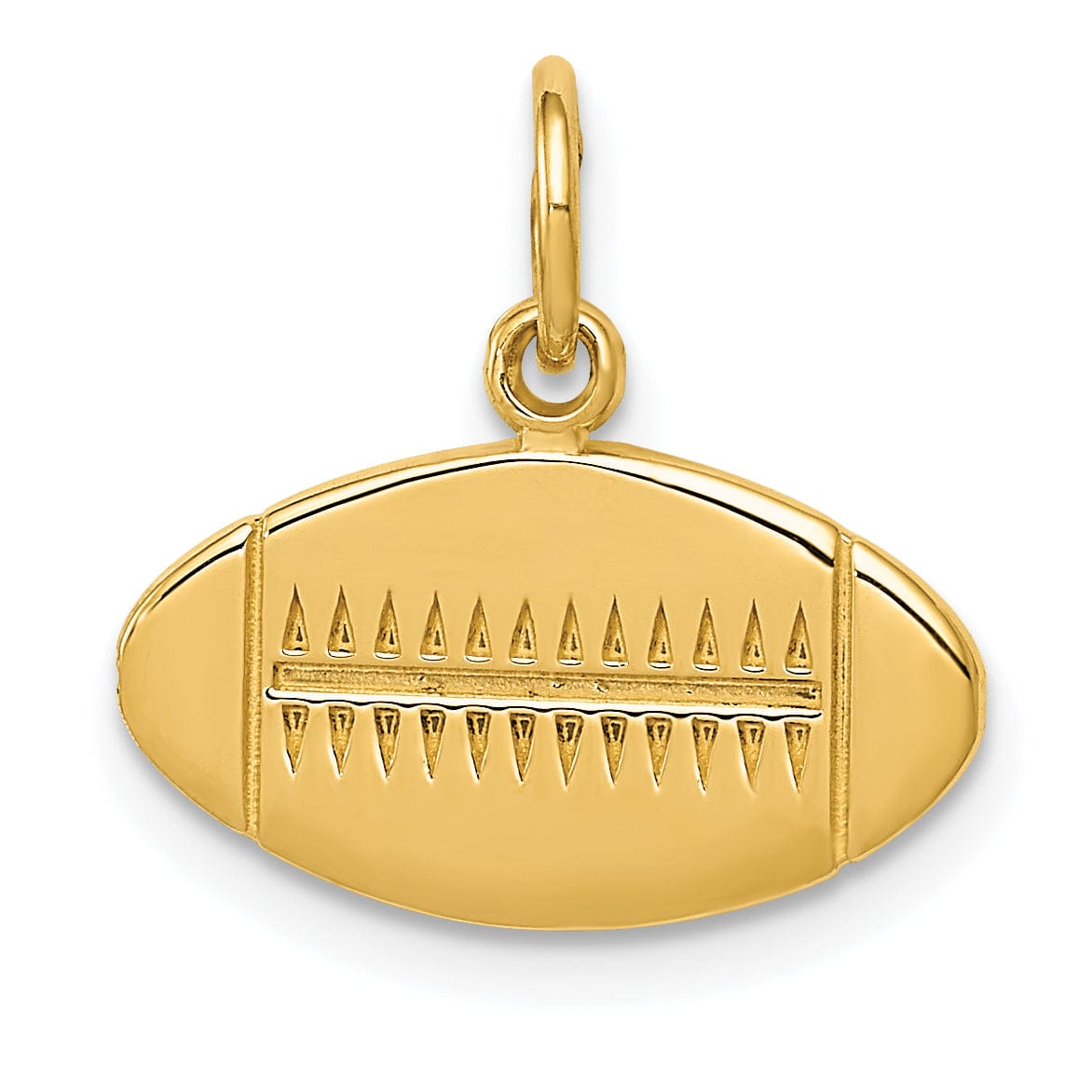 Crafted from high-quality 14k yellow gold, this pendant is not only beautiful but also durable and long-lasting. Whether you're a player, coach, or avid fan, this football charm pendant is the perfect accessory to show off your passion for the sport. Wear it on a chain as a necklace or add it to a bracelet for a personalized touch to your jewelry collection.