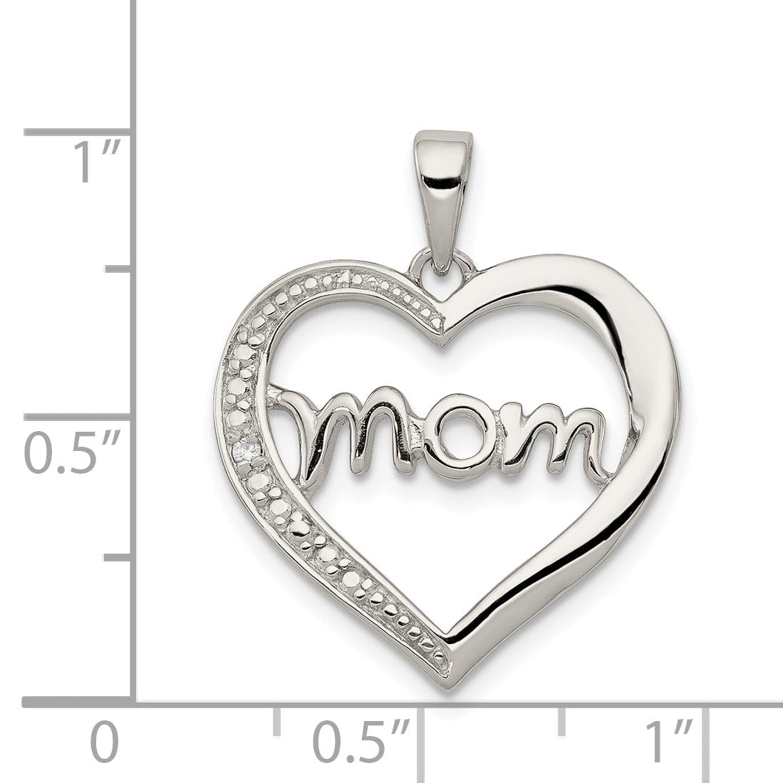 Silver Polished CZ Open Back Heart MOM Pendant