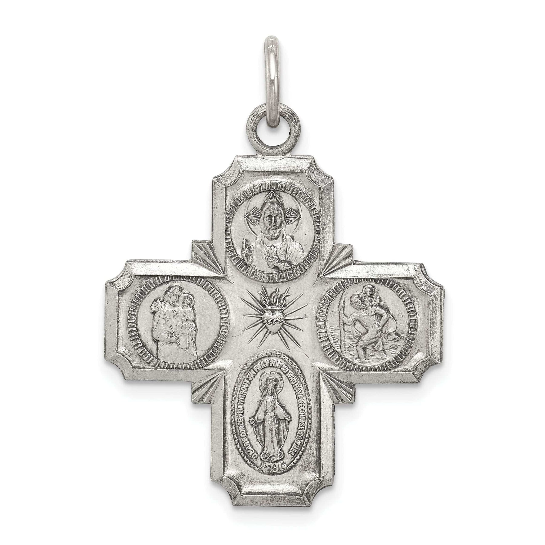 The antiqued finish of the medal gives it a timeless and classic look, making it suitable for everyday wear or special occasions. Whether you are buying it for yourself or as a gift for a loved one, the Sterling Silver Antiqued 4-way Medal is a beautiful and meaningful piece that will be cherished for years to come.