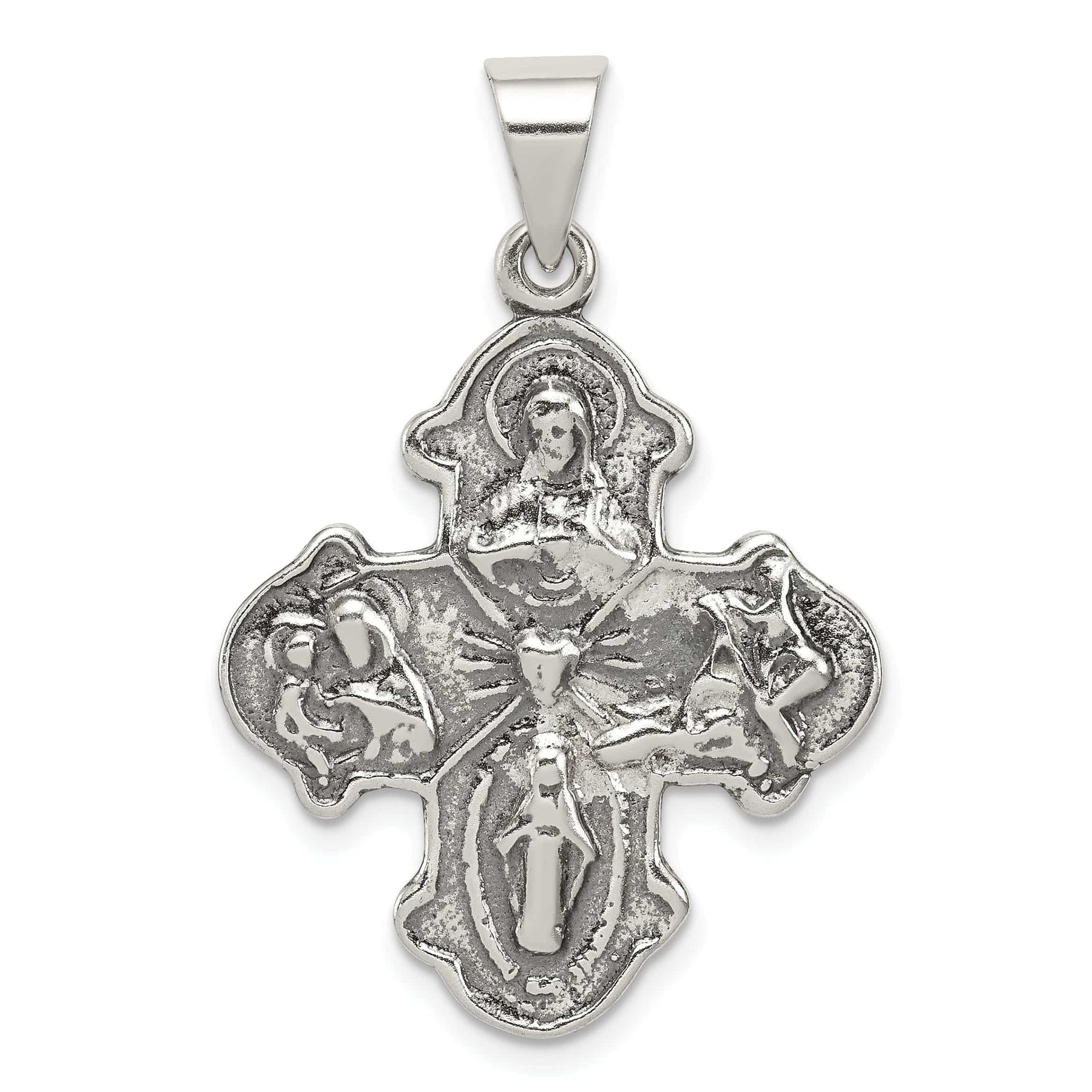 Add a touch of faith and style to your jewelry collection with this exquisite Sterling Silver Antiqued 4-way Medal. Crafted from high-quality sterling silver, this medal features a unique antique finish that gives it a timeless and elegant look.
