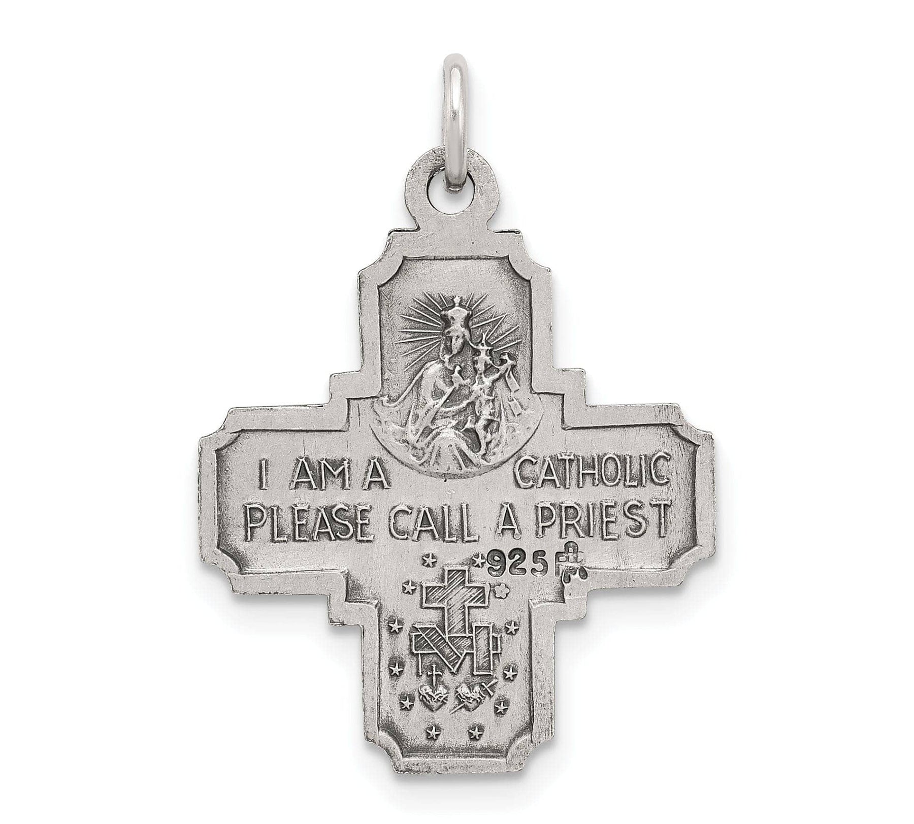 Whether you wear this medal as a personal reminder of your faith or as a thoughtful gift for a loved one, the Sterling Silver Antiqued 4-way Medal is a beautiful and versatile piece that will be cherished for years to come. Add this unique and spiritual medal to your jewelry collection today.
