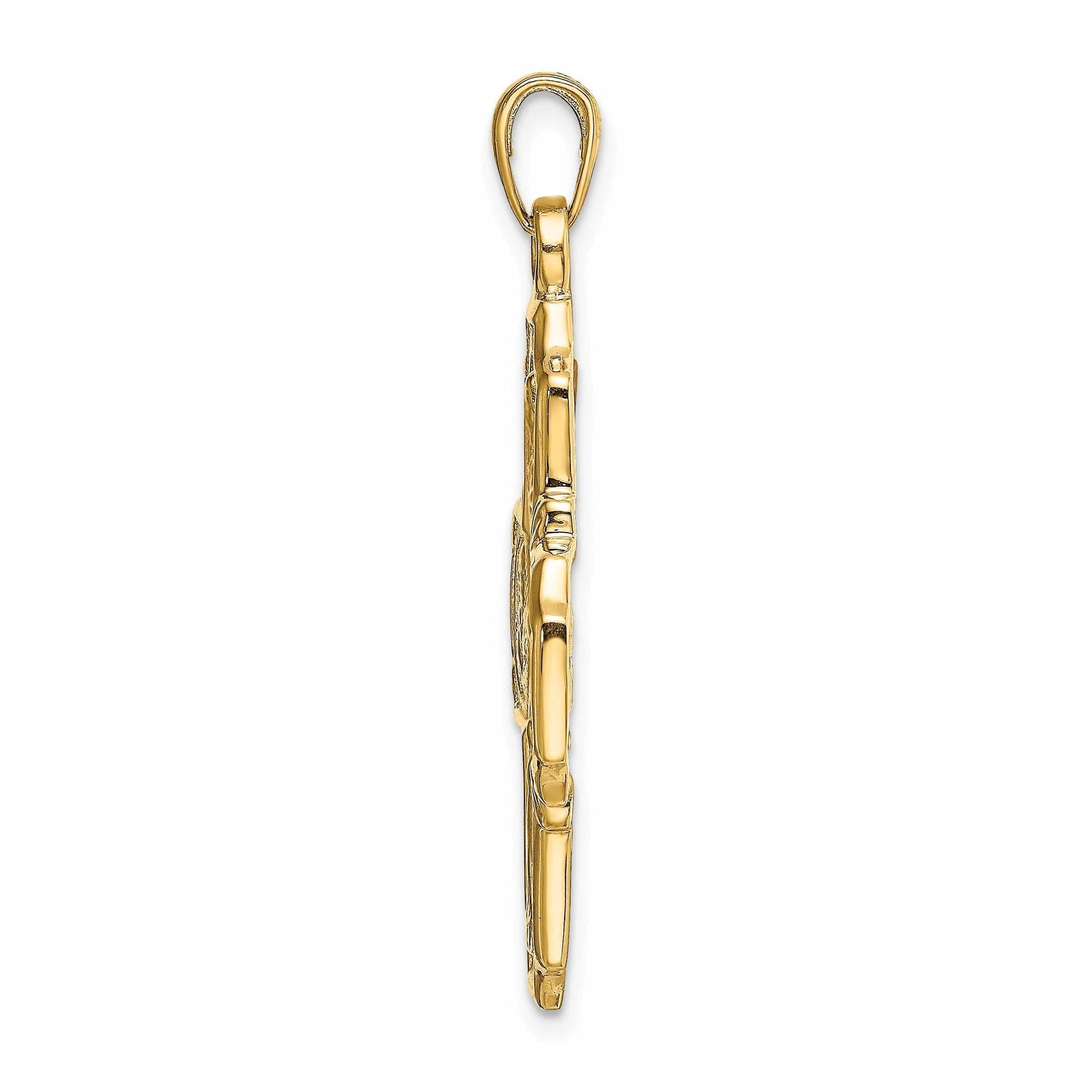 Introducing the stunning 14k Yellow Gold 4-Way Medal Pendant, the perfect piece for anyone looking to express their faith in a beautiful and elegant way. Crafted from solid polished satin finish reversible 14k yellow gold, this pendant exudes luxury and craftsmanship.