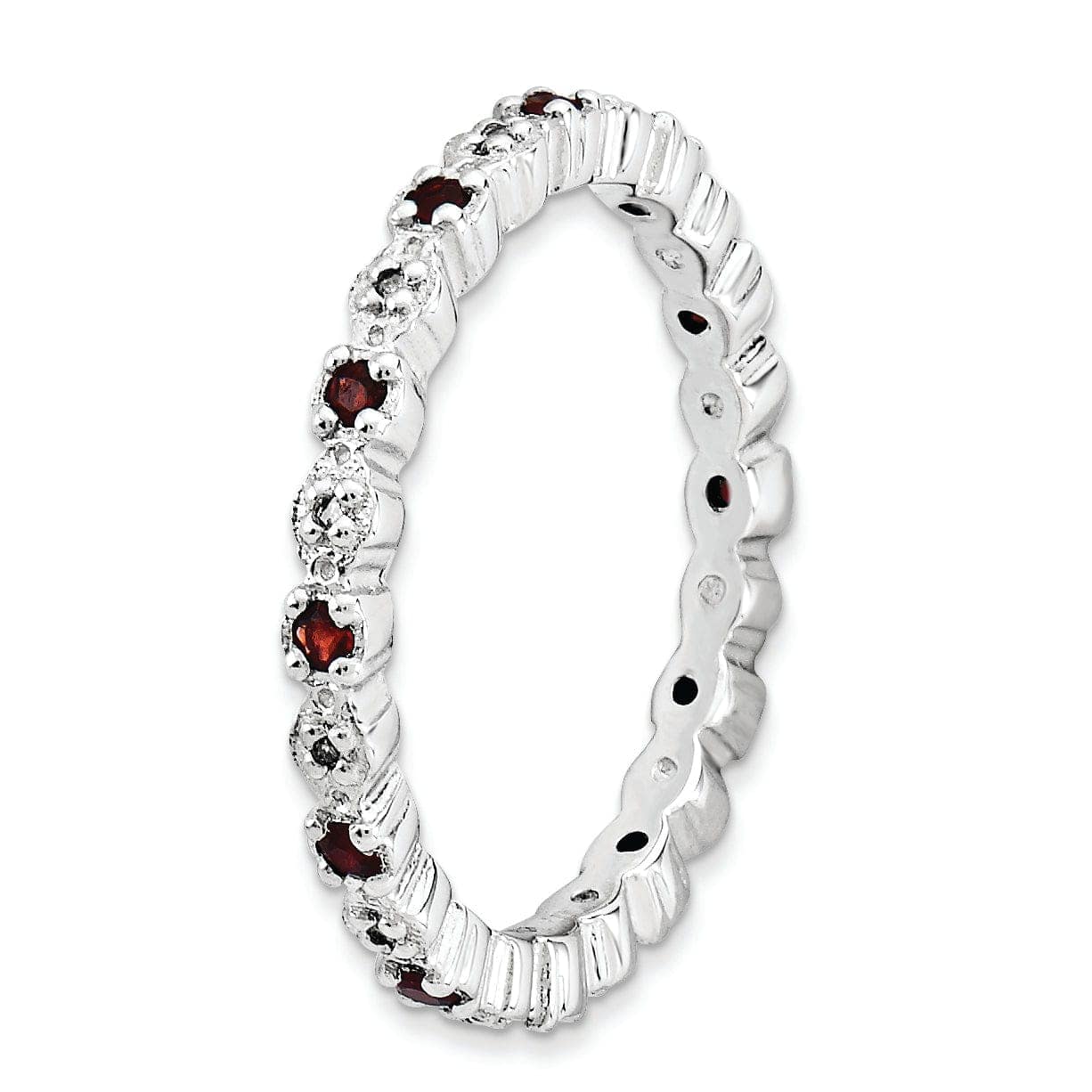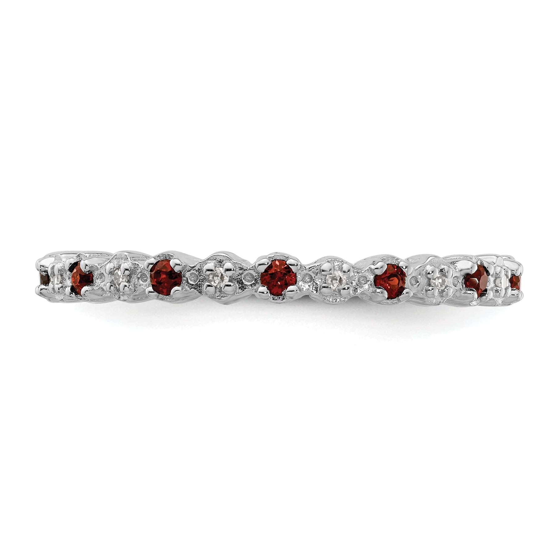Add a pop of color and sparkle to your jewelry collection with the Sterling Silver Stackable Expressions Garnet Diamond Ring. Perfect for any occasion, this ring is a timeless and versatile piece that will be cherished for years to come. Upgrade your style with this exquisite ring today!