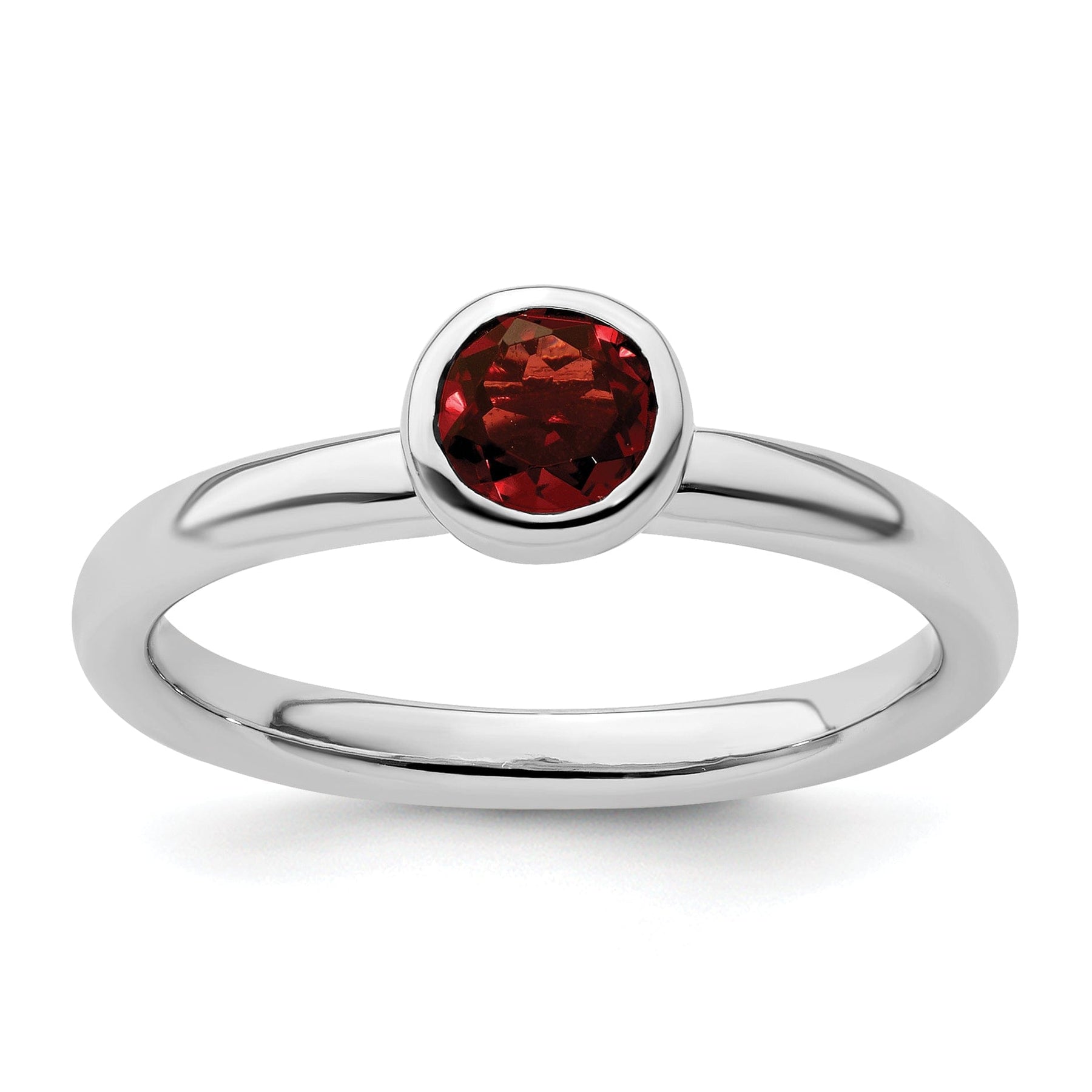 Elevate your jewelry collection with this exquisite Sterling Silver Stackable Expressions Garnet Ring. Crafted from high-quality sterling silver, this stunning ring features a deep red garnet stone set in a low round design, adding a touch of elegance to any outfit. The width of the item is 2.25mm, making it perfect for stacking with other rings from the Stackable Expressions collection.