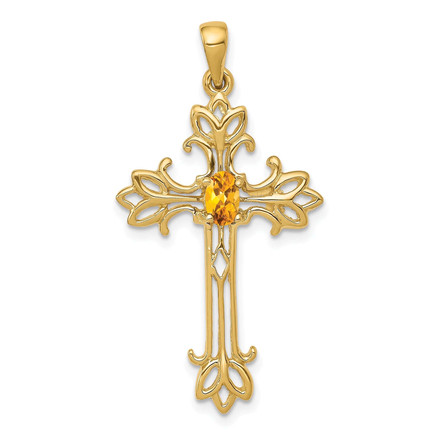 14k Yellow Gold Oval Shape Citrine Stone Cross Pendant