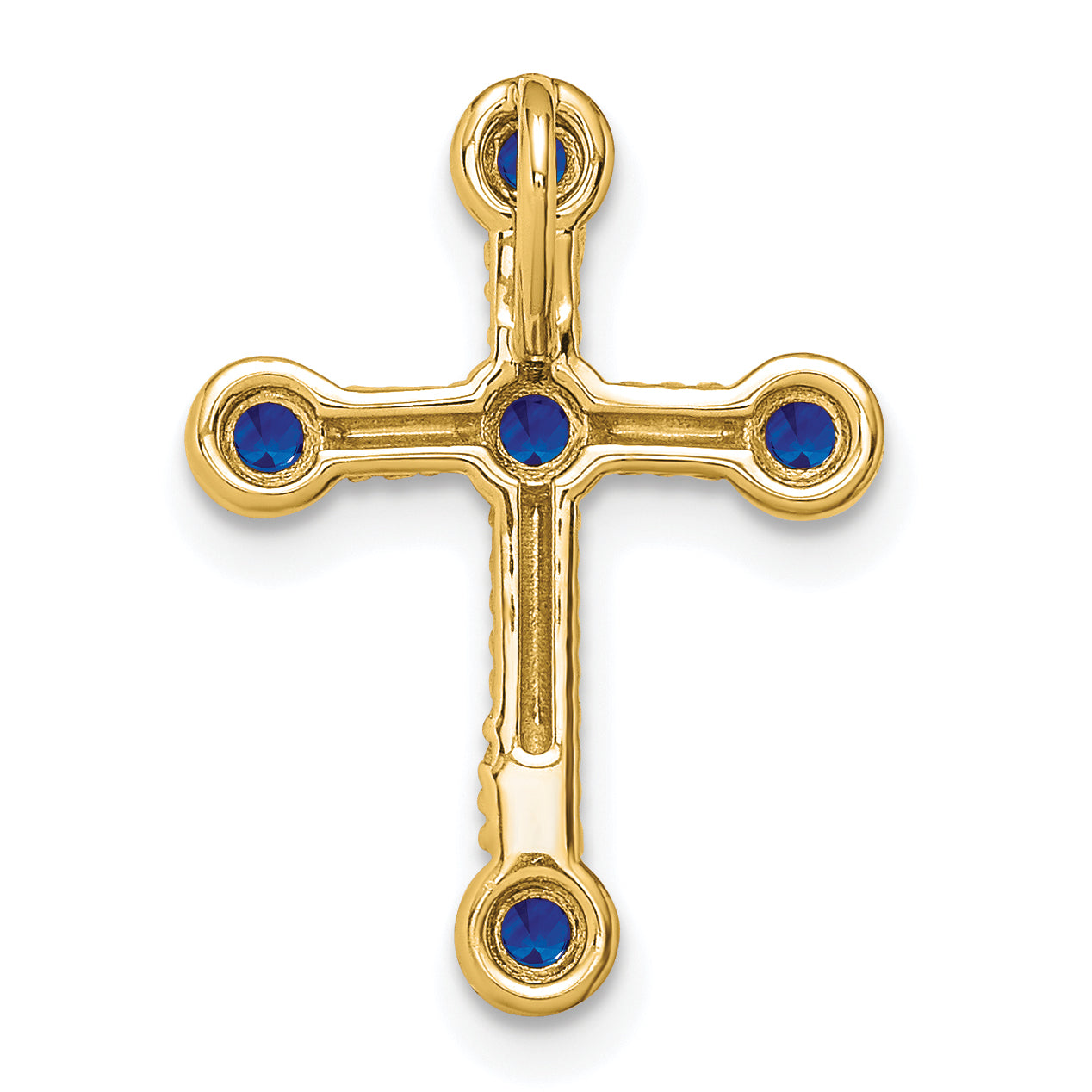 14k Yellow Gold Sapphire Twist Design Cross Chain Slide