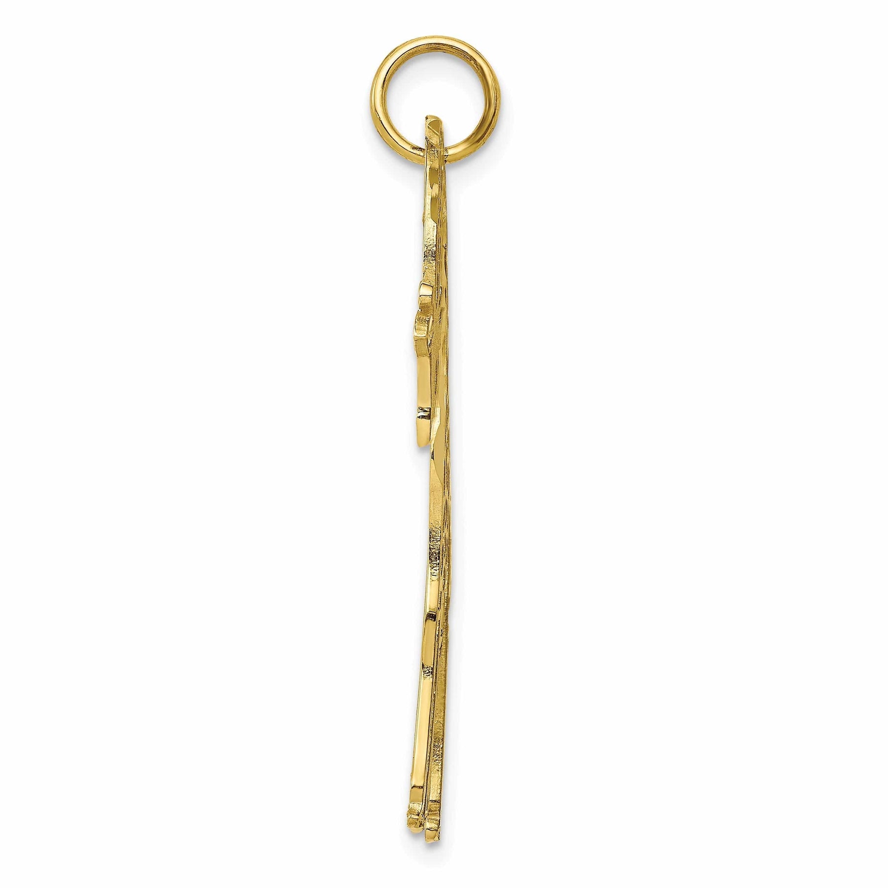 The giraffe-shaped pendant is made from solid 10k yellow gold, ensuring durability and longevity. The polished and diamond cut finish adds a touch of shimmer and sophistication, making it a standout piece in any jewelry collection.