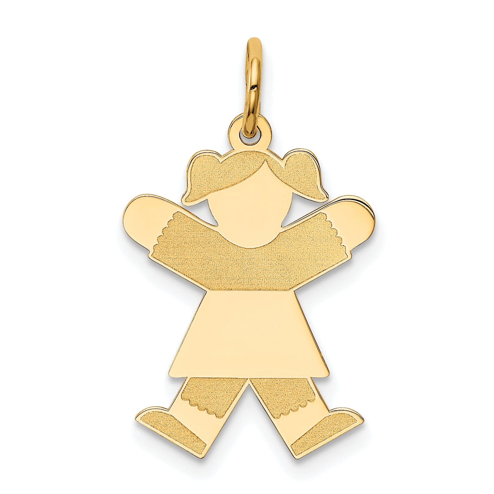 Introducing our stunning 14k Yellow Gold Girl With Pigtails Joy Charm, a beautiful and playful addition to any jewelry collection. Crafted from high-quality 14k yellow gold, this charm features a laser-etched solid polished design of a sweet girl with pigtails, radiating pure joy and happiness.