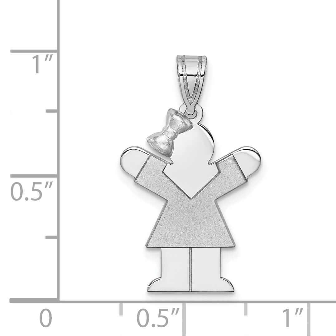 Add a touch of elegance and charm to your jewelry collection with this stunning 14k White Gold Solid Small Girl With Bow Love Charm. Crafted with precision and care, this beautiful charm features a casted satin finish that exudes sophistication. The small polished girl with a bow adds a cute and playful touch, making it the perfect accessory to showcase your love and affection.