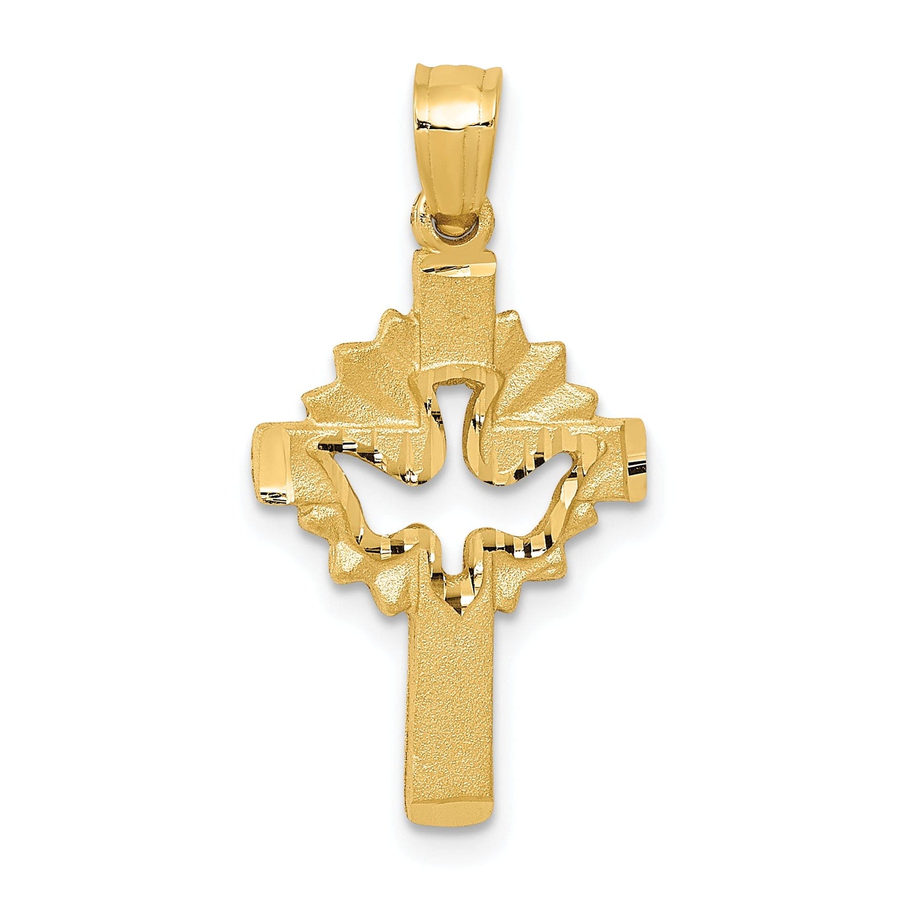 Lovely Rita's Pendants & Charms 14k Yellow Gold Satin D.C Cut Out Design Dove Cross Pendant