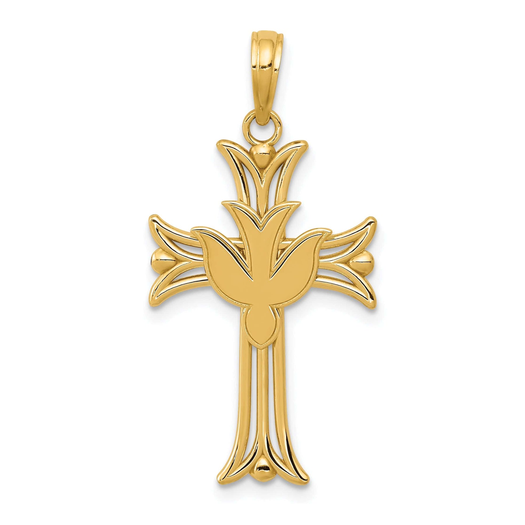 14K Yellow Gold Sleek Design Dove on Cross Pendant