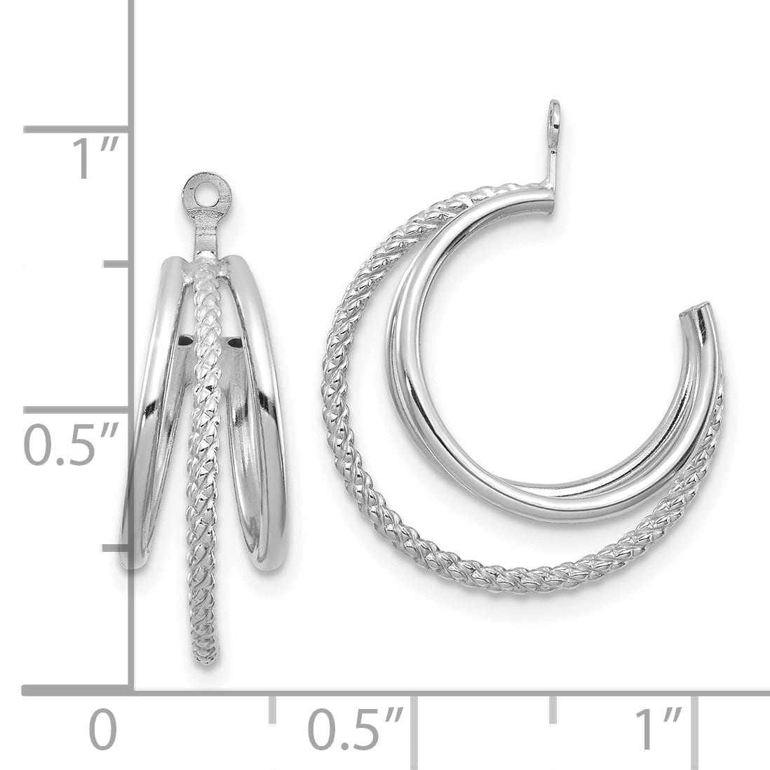 Elevate your style with these stunning 14K White Gold Twisted Triple Design Hoop Earring Jackets. Crafted from solid 14K white gold and finished with a polished, rhodium plating, these earring jackets offer both durability and elegance. Measuring 19mm in length and 8mm in width, they are the perfect accessory to enhance your favorite earrings, adding a touch of sophistication to any look. Lightweight at just 1.56 grams, they are comfortable for all-day wear. Transform your jewelry collection with these exquisite earring enhancers.