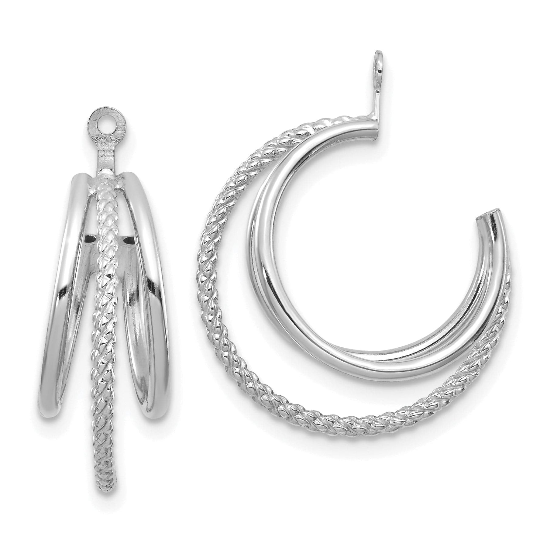 14K White Gold Twisted Triple Design Hoop Earring Jackets