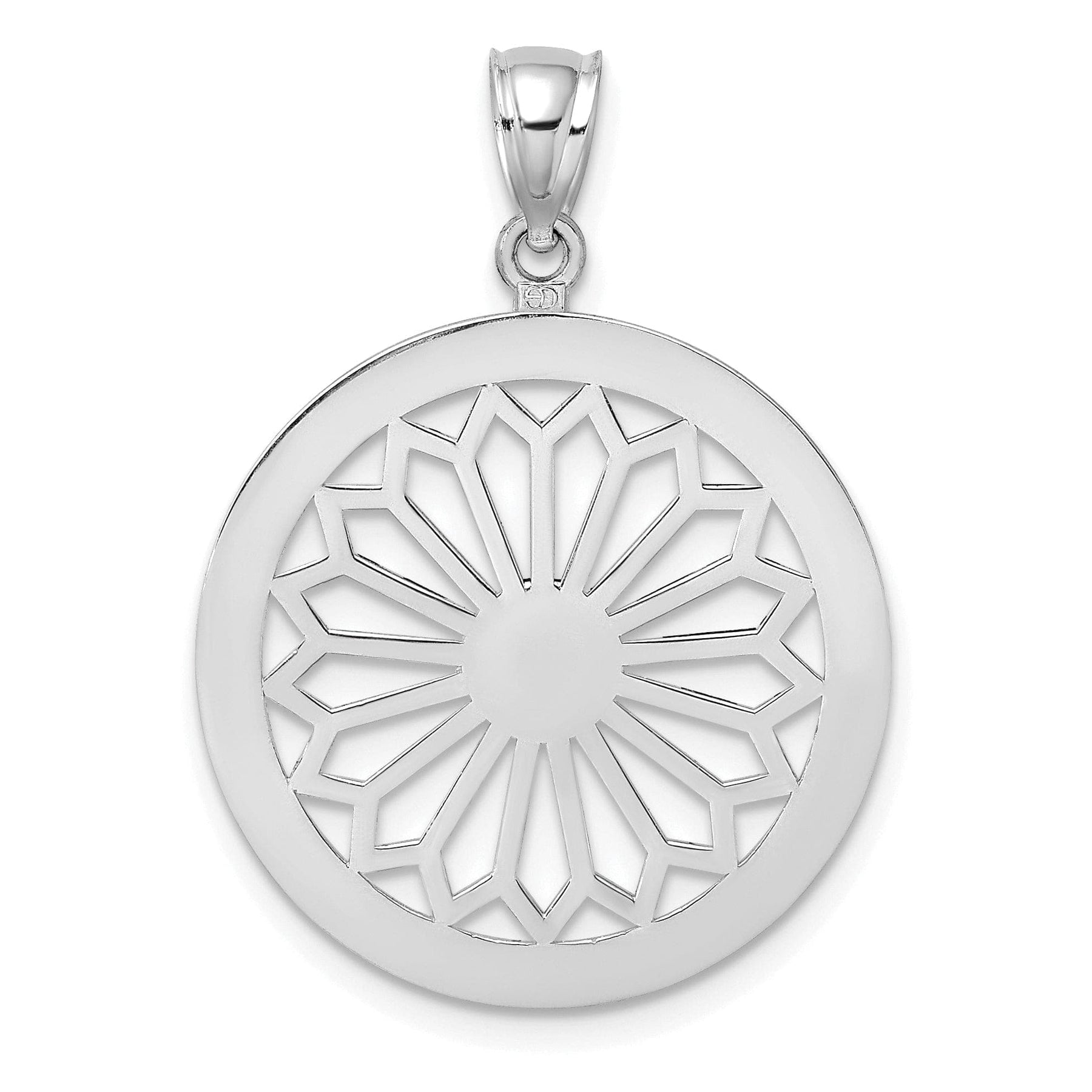 14K White Gold Polished Finish Retro Diasy In Round Frame Design Pendant