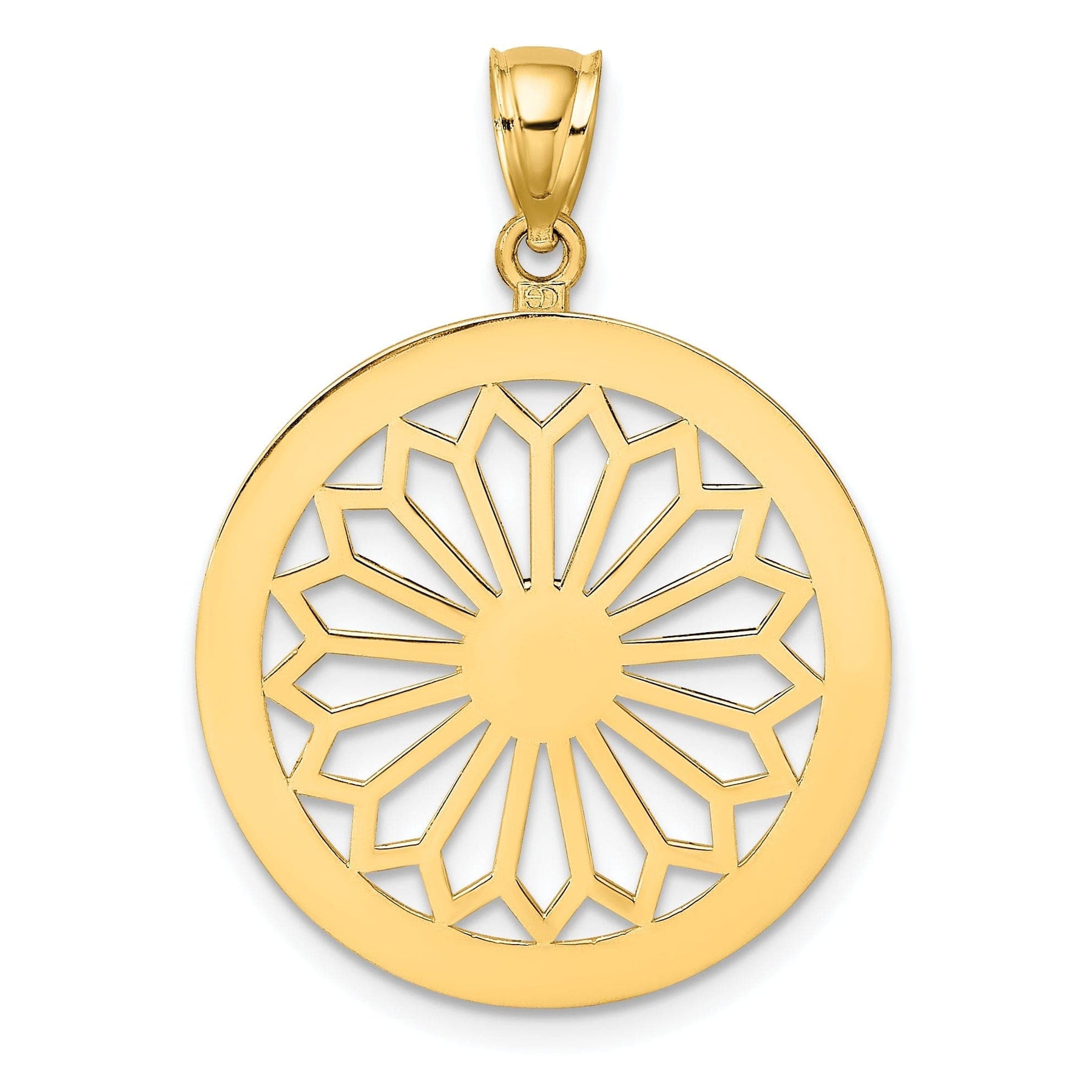 14K Yellow Gold Polished Finish Retro Diasy In Round Frame Design Pendant