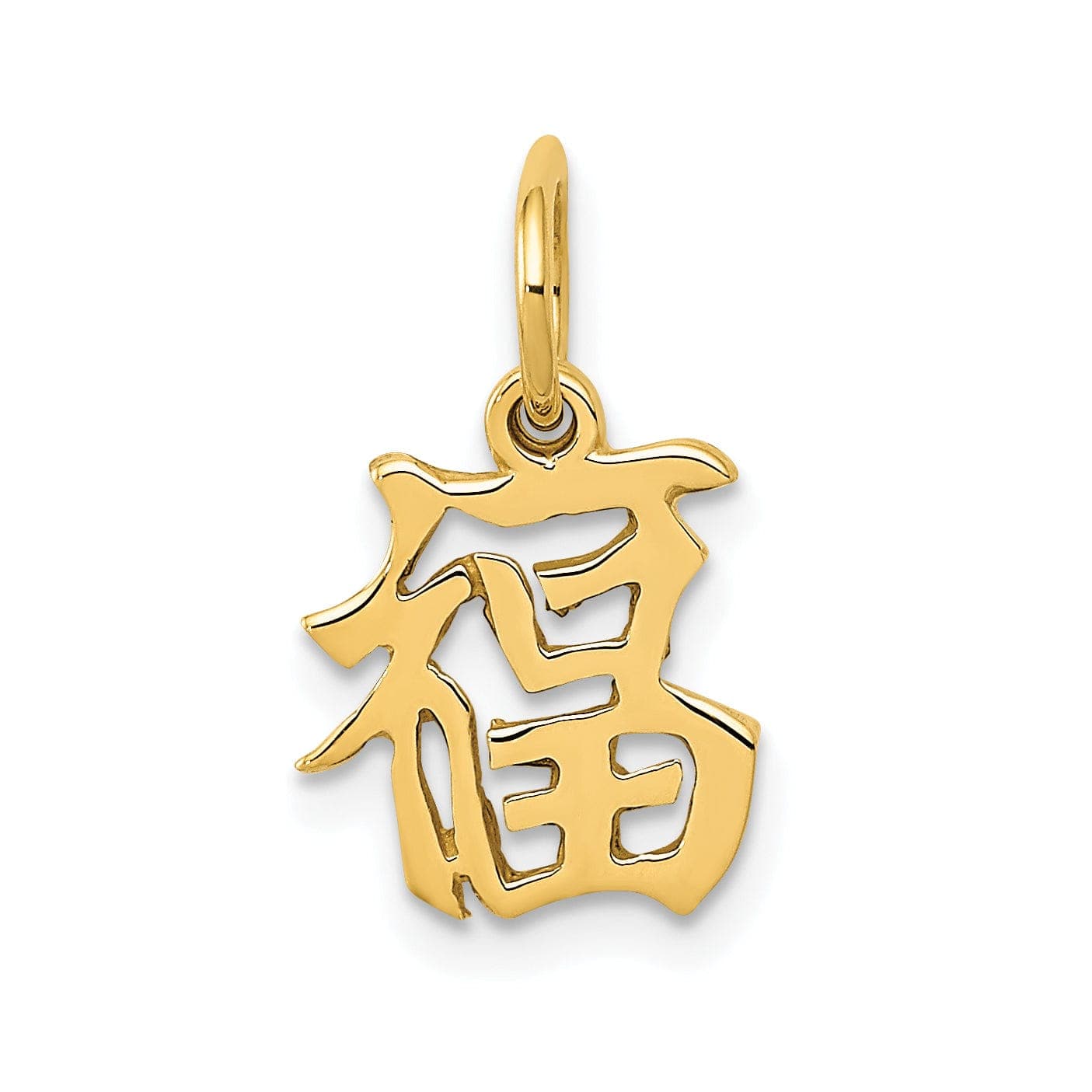 14k Yellow Gold Polished Finish Chinese Symbol Good Luck Charm Pendant