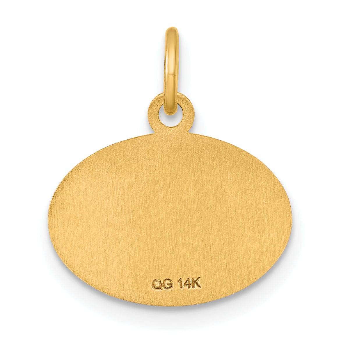 With a polished finish, the charm gleams with a captivating luster, beautifully reflecting light with every movement. Measuring 17.05 mm in length and 15.25 mm in width, the oval shape adds a classic touch to this meaningful accessory. At just 0.57 grams, it is lightweight and comfortable to wear, making it an ideal addition to any jewelry collection.