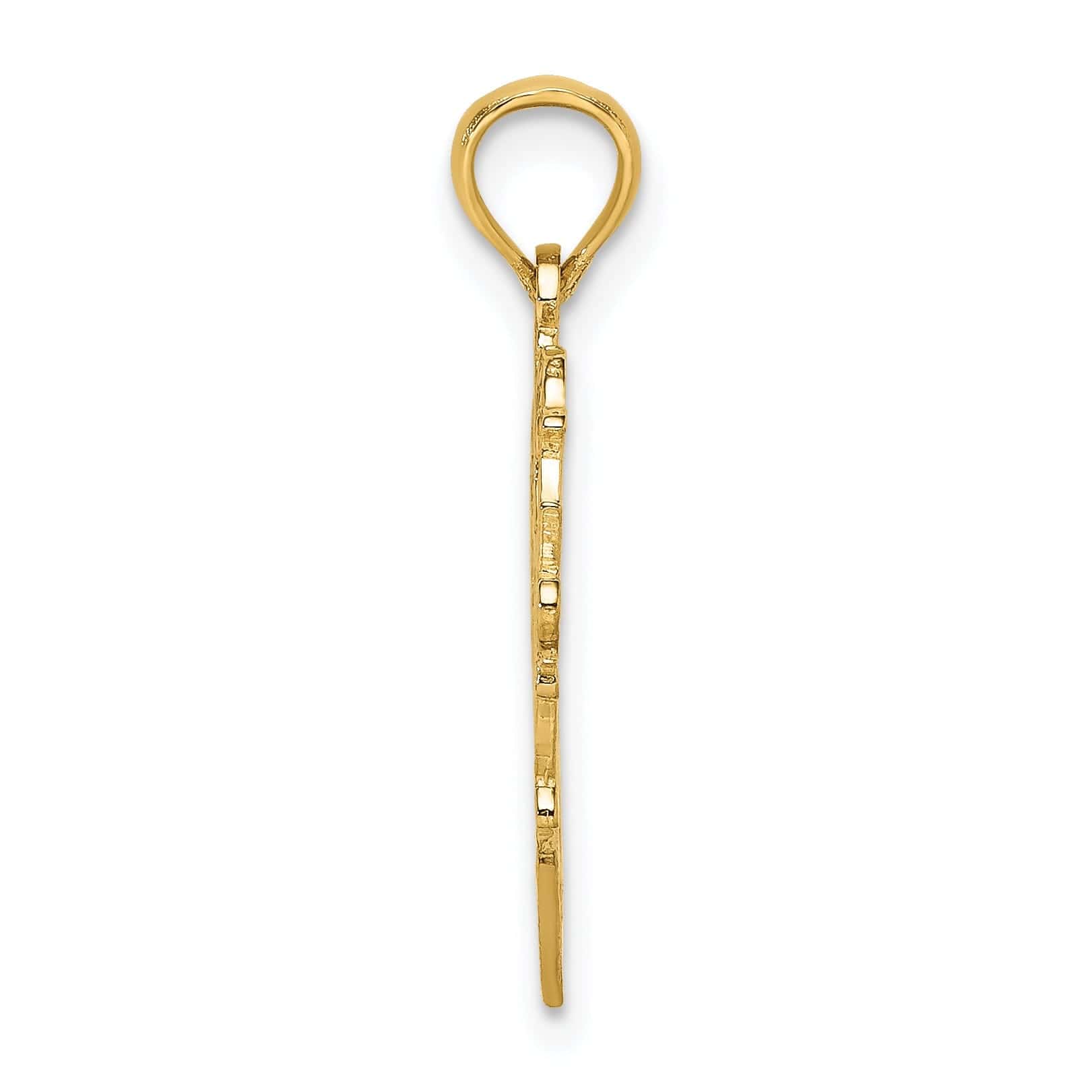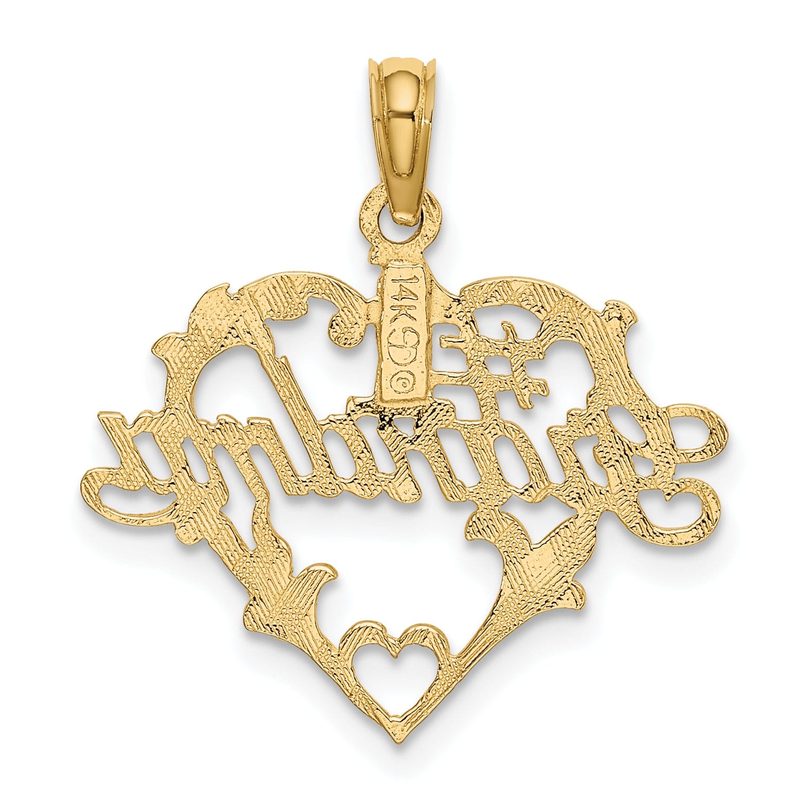 14K Yellow Gold Flat Back Polished Finish Script #1 GRANDMA In Heart Shape Design Charm Pendant