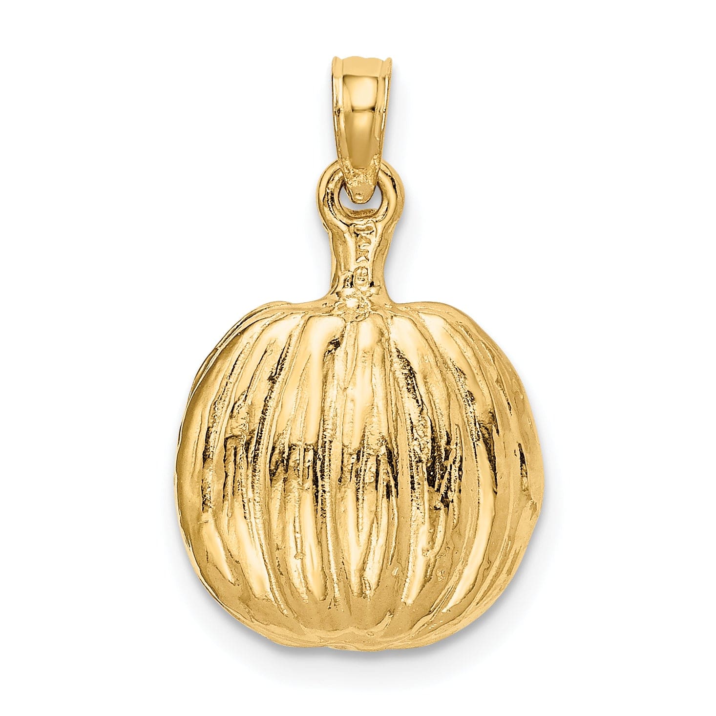 14k Yellow Gold Enameled Inside 3-D Cut-Out Jack-o-Lantern Pendant